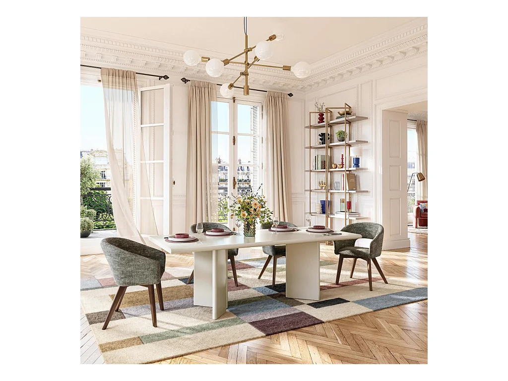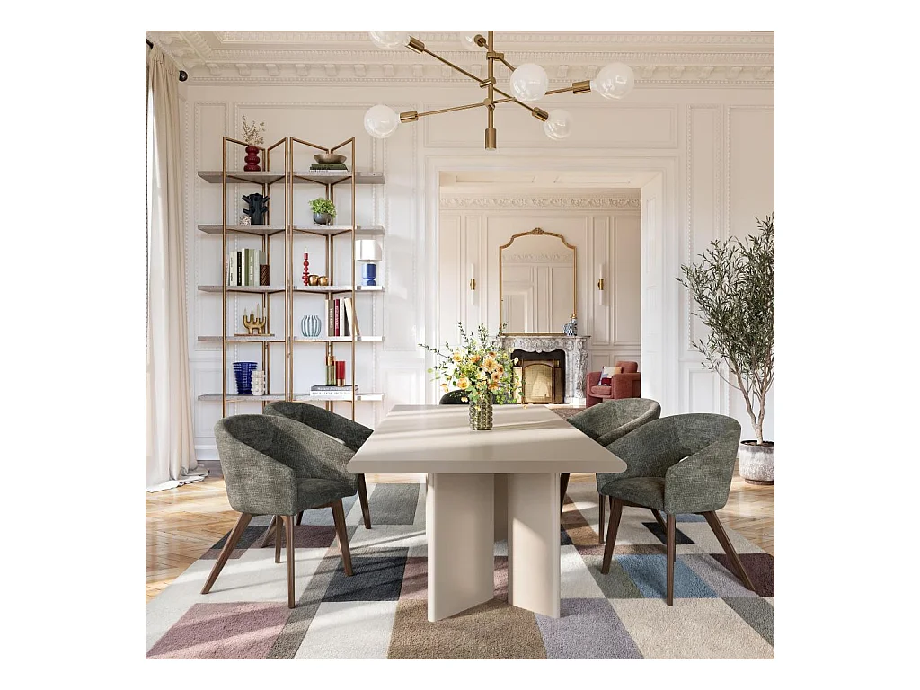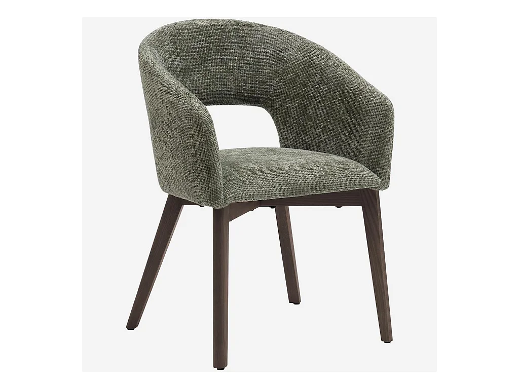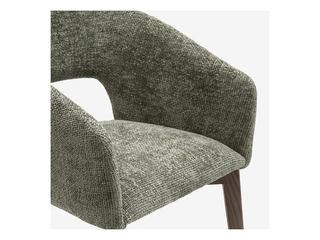 Habitat - Lot de 2 chaises en tissu chenille et bois massif avec accoudoirs - Vert et noyer - Rusti