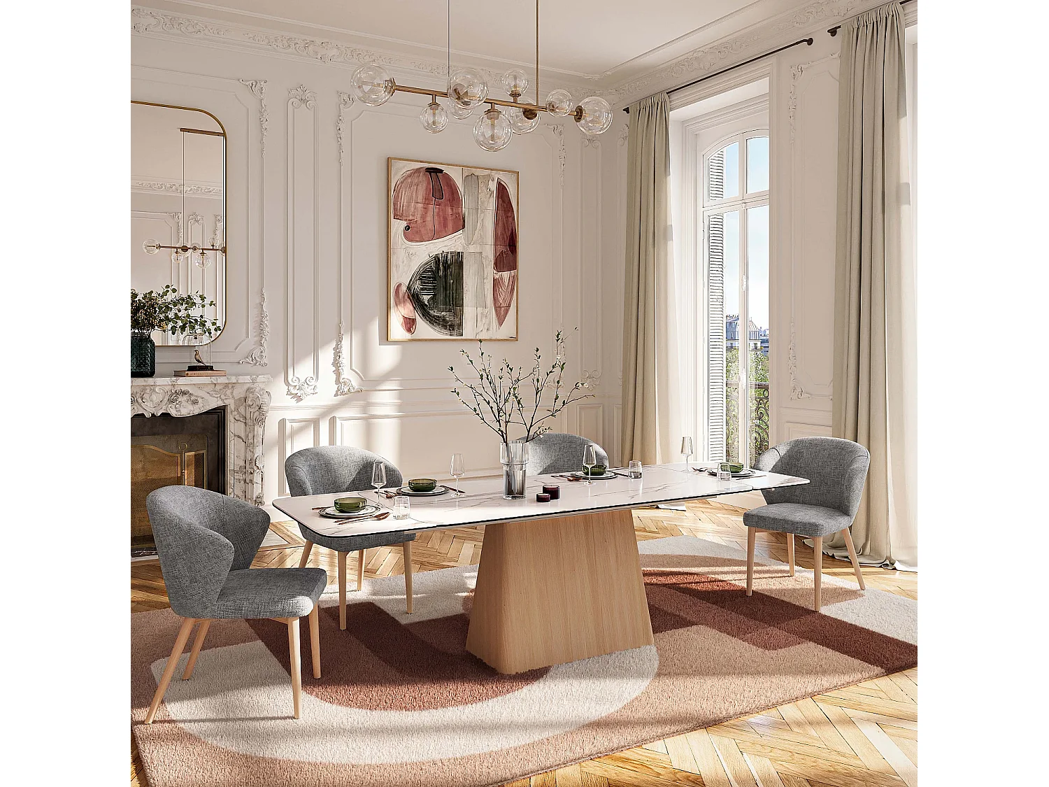 Lot de 2 chaises en tissu chenille et bois massif couleur chêne - Gris argent