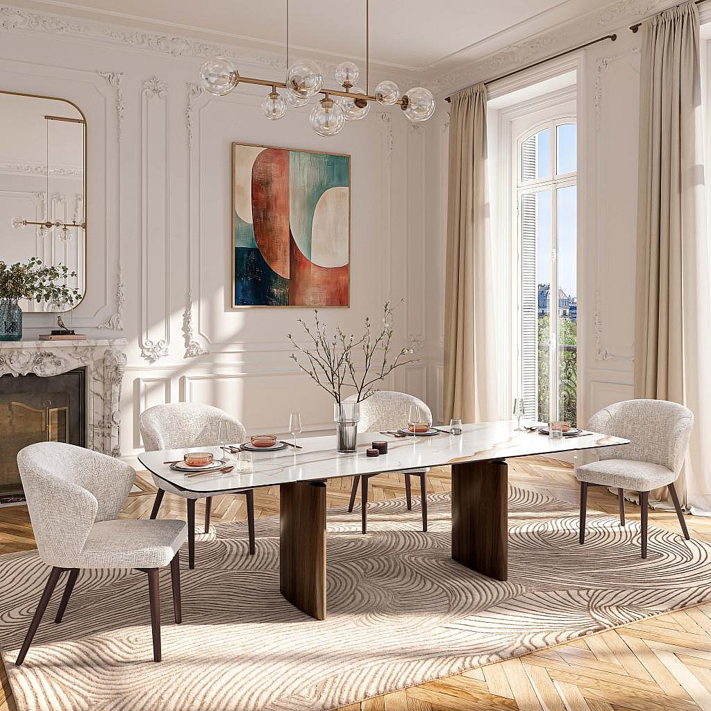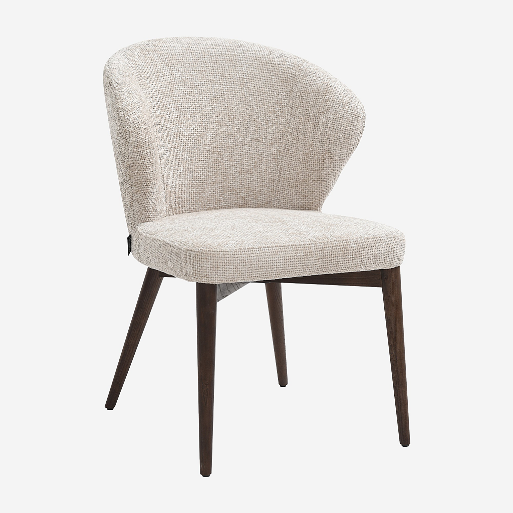 Habitat - Lot de 2 chaises en tissu chenille et bois massif couleur noyer - Crème - Luris