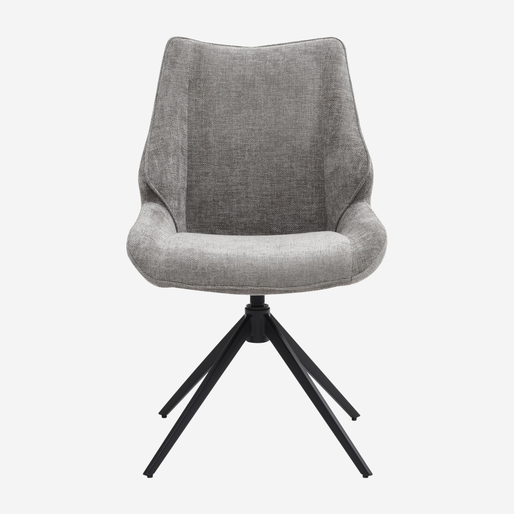 Habitat - Lot de 2 chaises pivotantes en tissu chenille et métal noir - Gris fumé - Osta