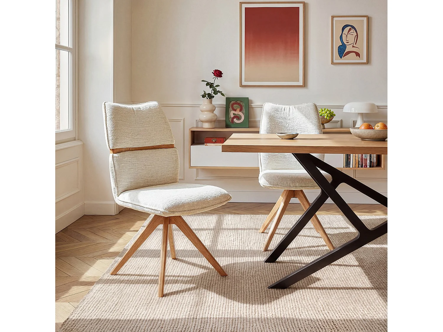 Habitat - Lot de 2 chaises pivotantes en tissu et chêne - Crème - Timiso