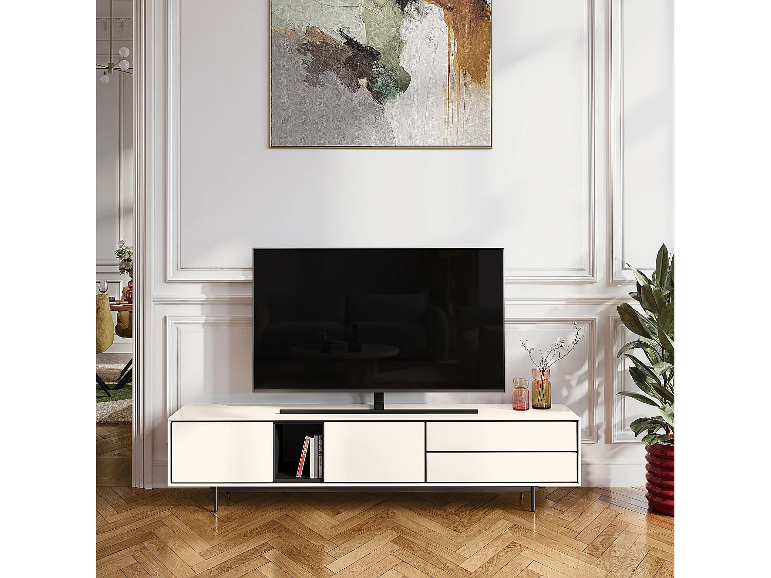 Habitat - Meuble TV 2 portes et 2 tiroirs - Beige - Design by Céline Mognon Fichet - Farrel
