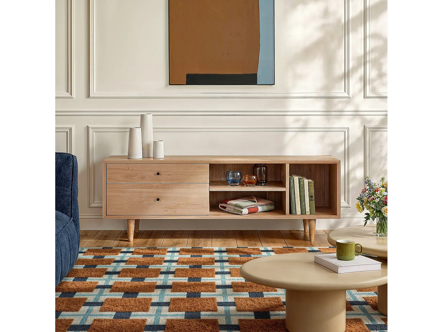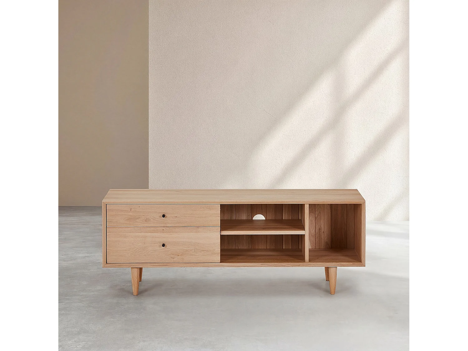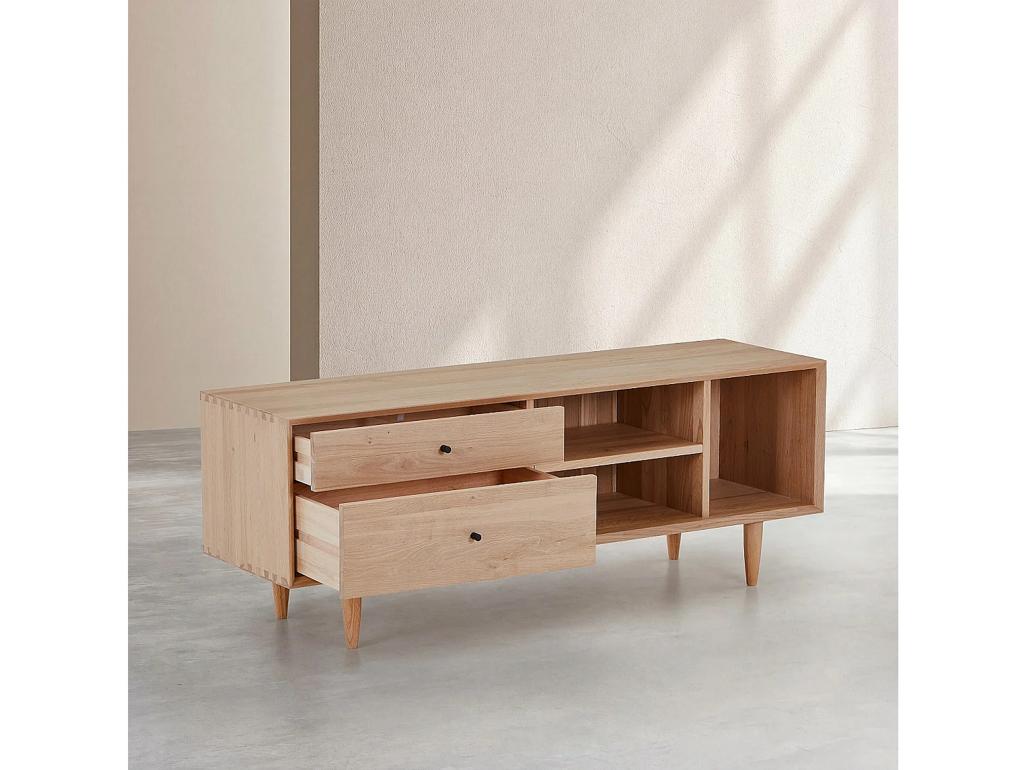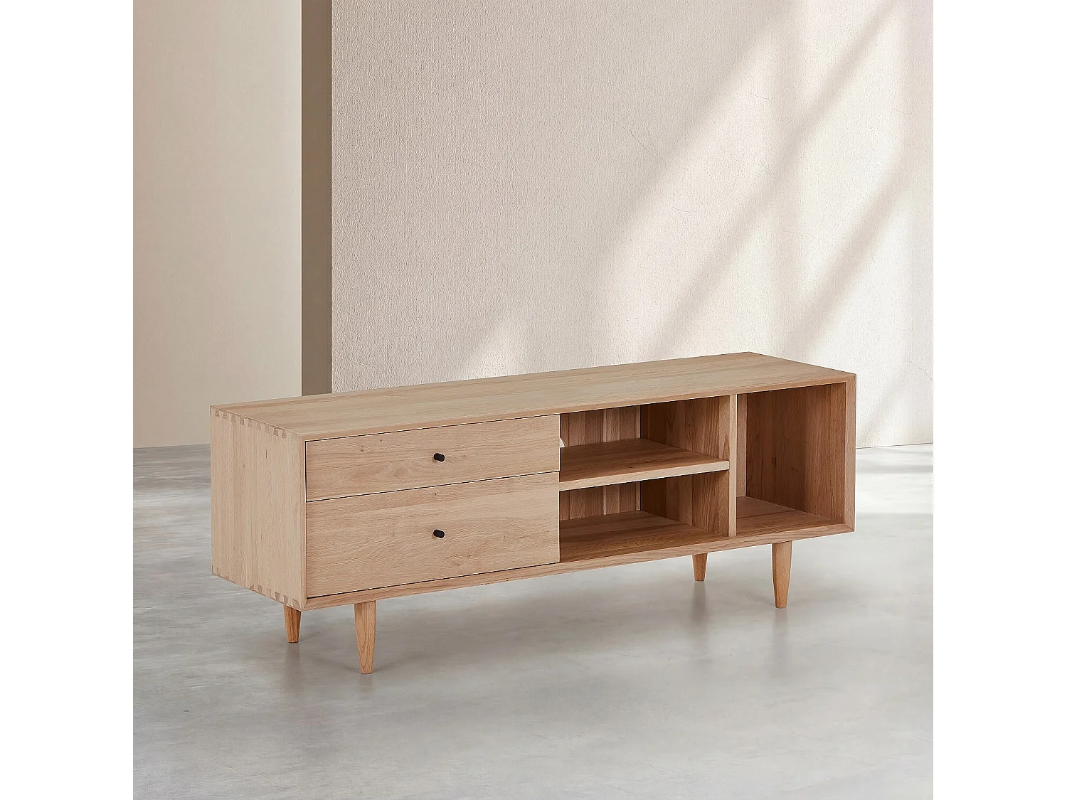 Habitat - Meuble TV 2 tiroirs en chêne massif - Naturel - Eugenie