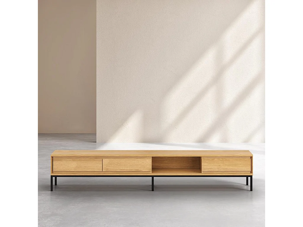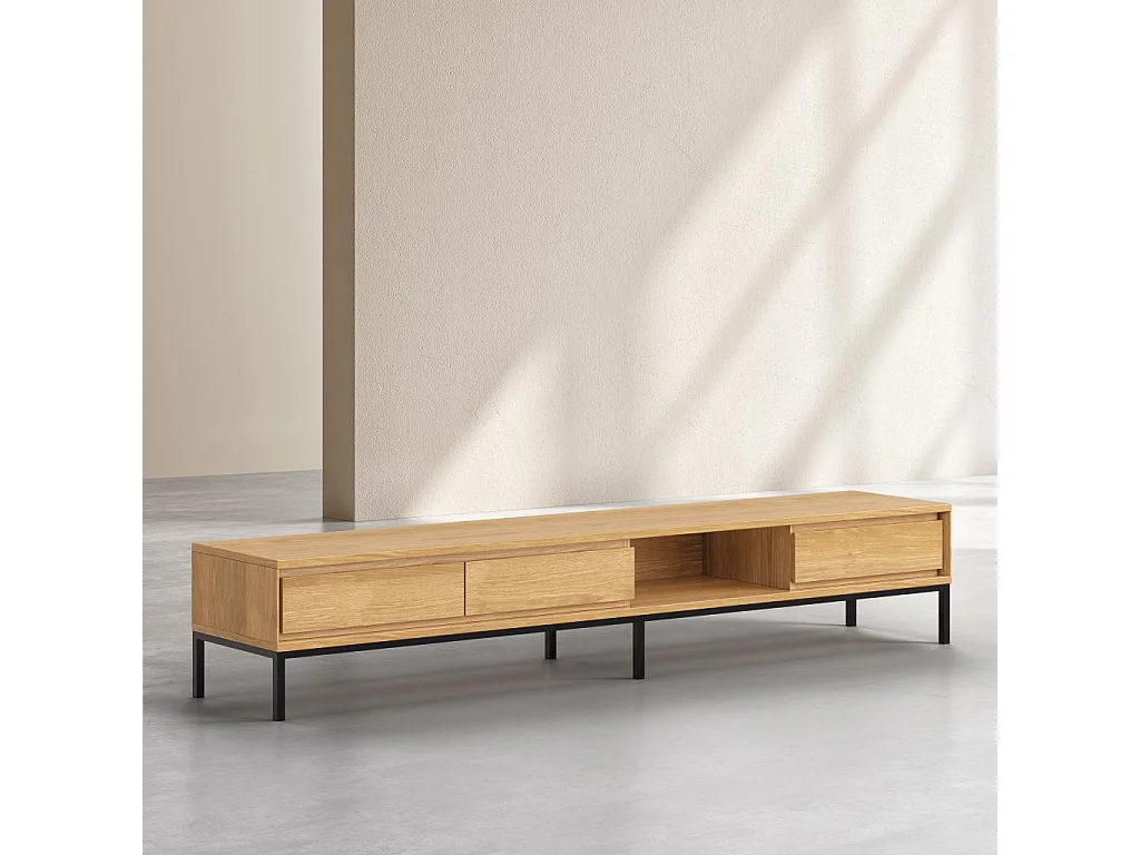 Habitat - Meuble TV 3 tiroirs en chêne et métal noir - Naturel - Design by Hélèna Pille - Flavie