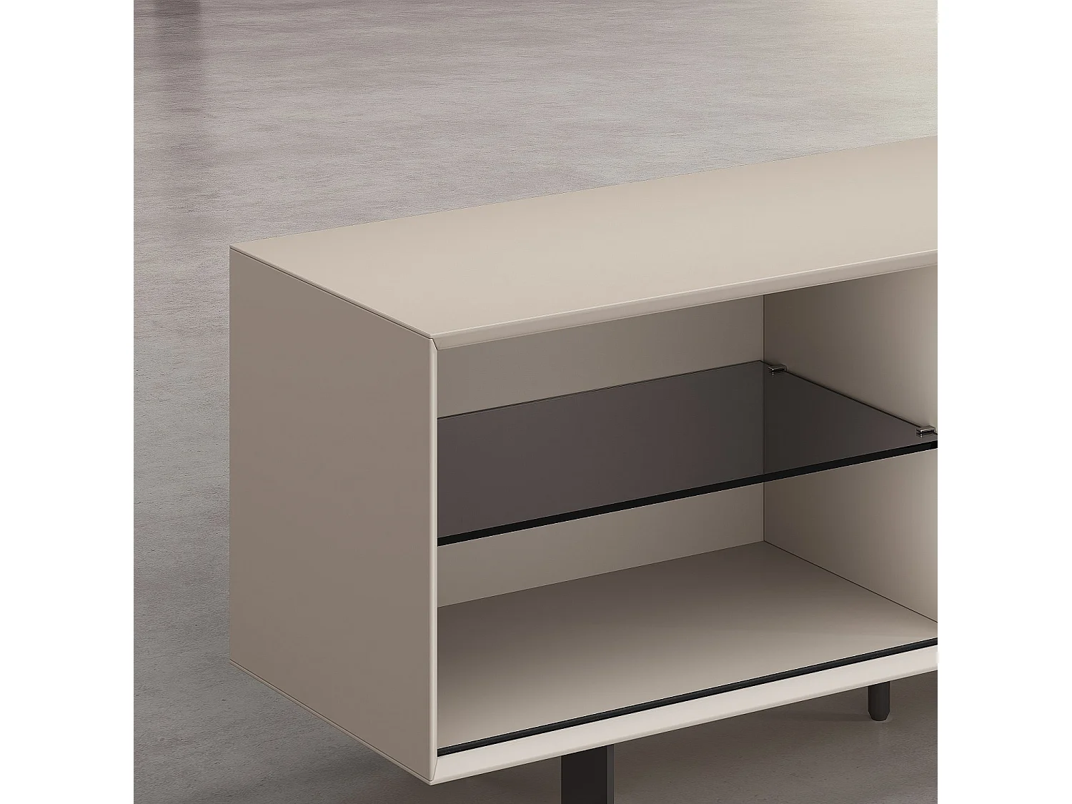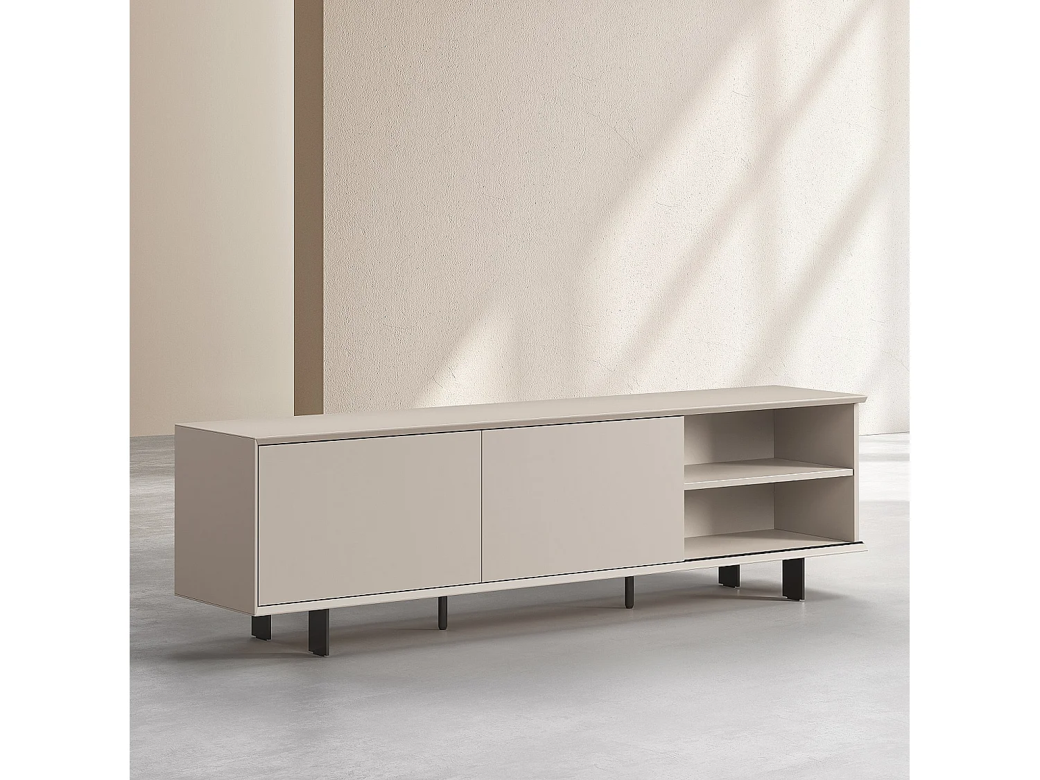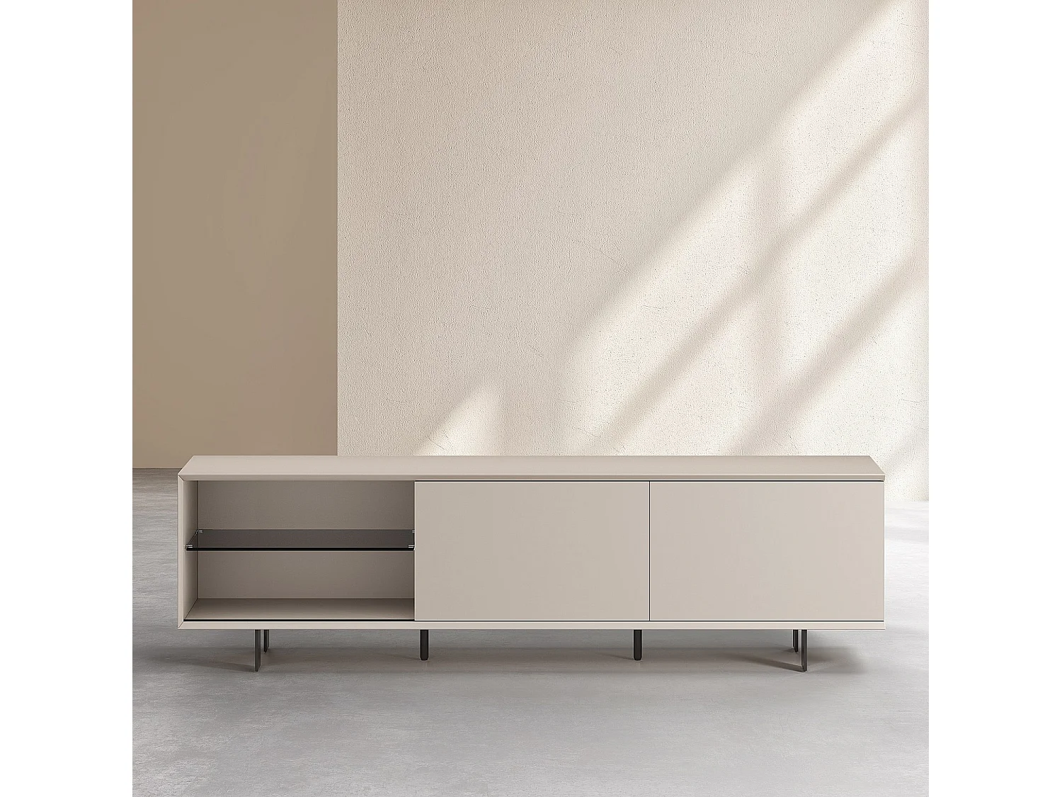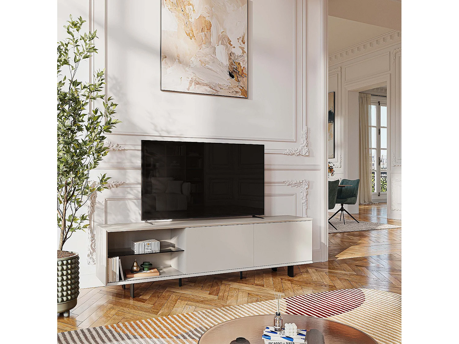 Habitat - Meuble TV avec portes coulissantes et pieds en métal - Crème - Agnes