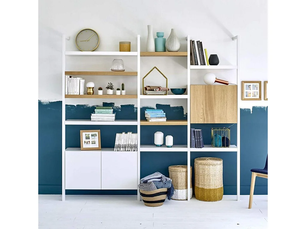 Meuble sous pente 2 portes et 2 étagères - Blanc et naturel - ADEZIO