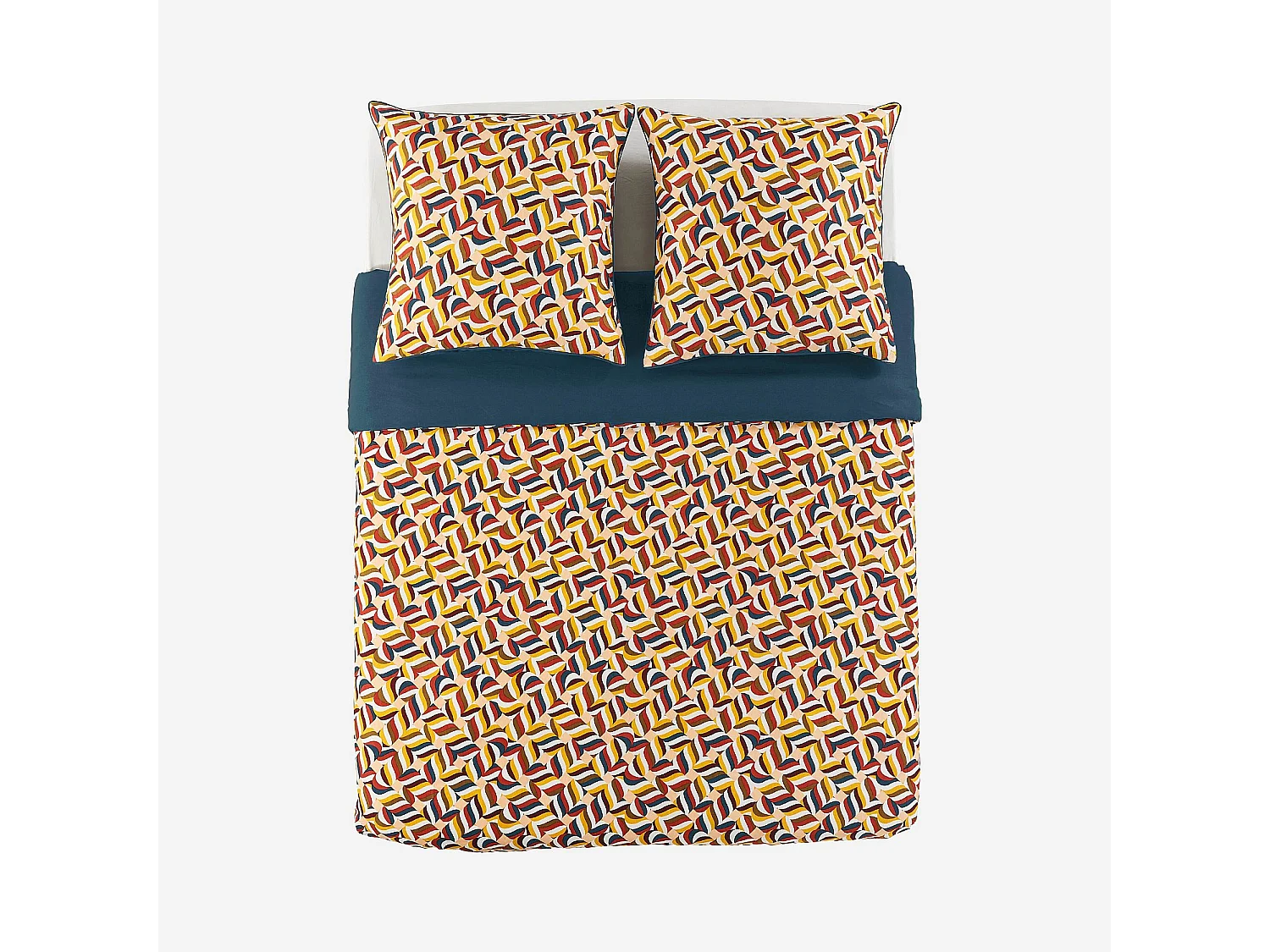 Habitat - Parure de lit réversible en satin de coton bio - 260 x 240 cm - Bleu nuit et Bordeaux - Design by Floriane Jacques - Claudia