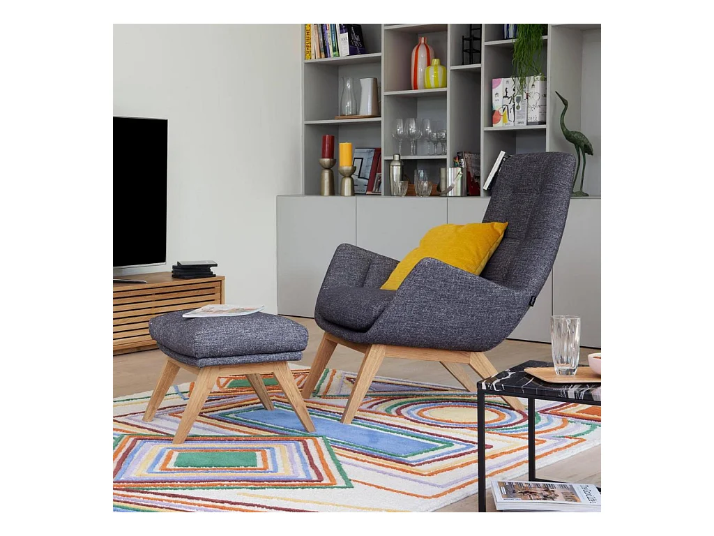 Habitat - Repose-pieds en tissu Lucca - Bleu zingué - Pieds chêne - Dena