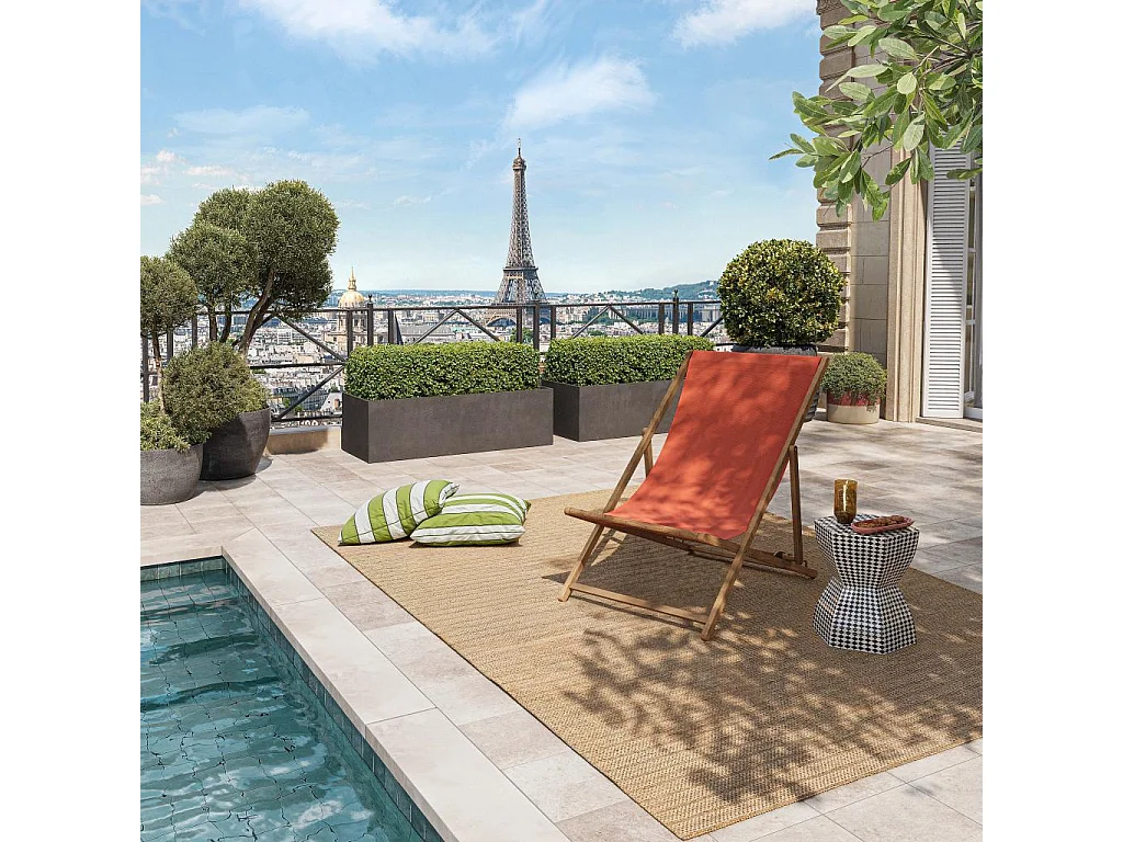 Chaises inclinables de jardin lot de 2 et coussins beige rotin