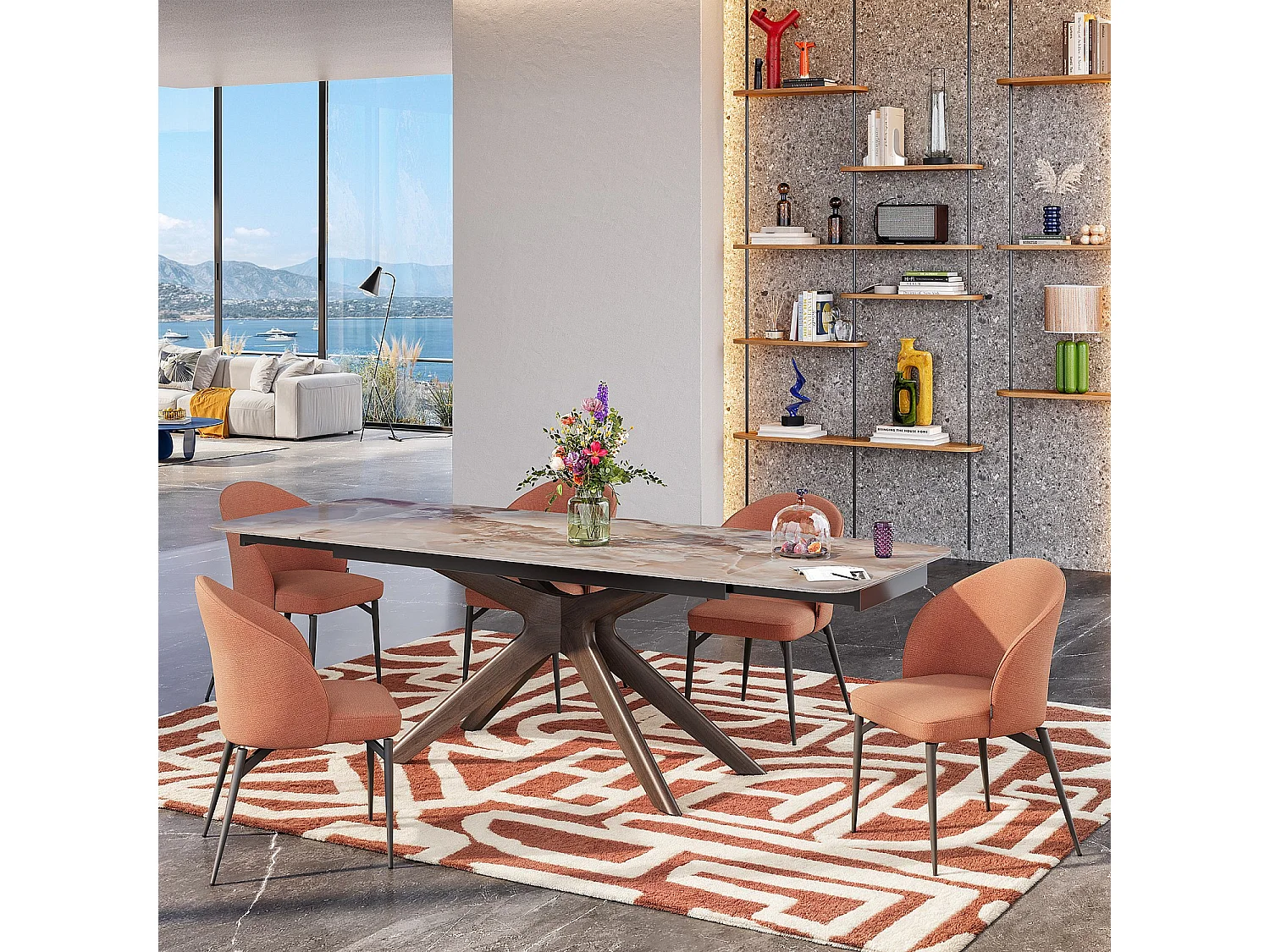 Habitat - Table rectangulaire extensible en céramique et bois massif finition noyer - Beige ambré - Misto