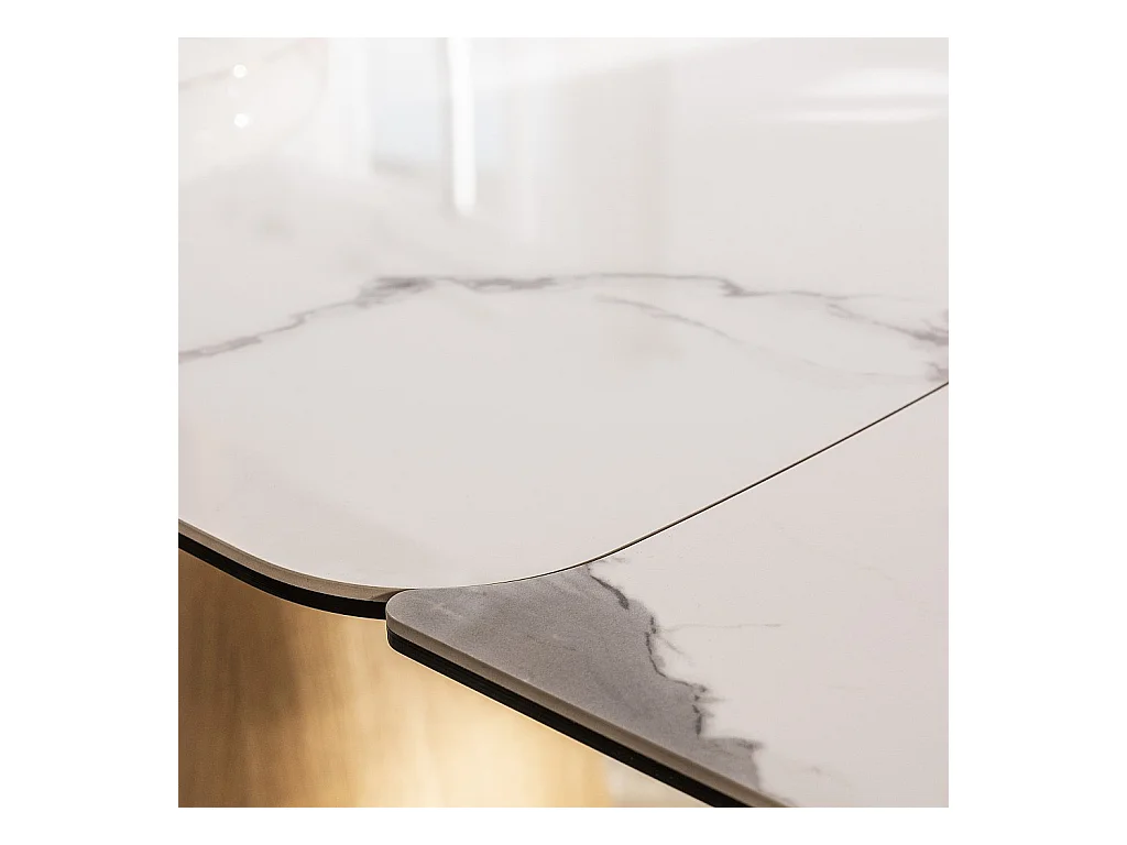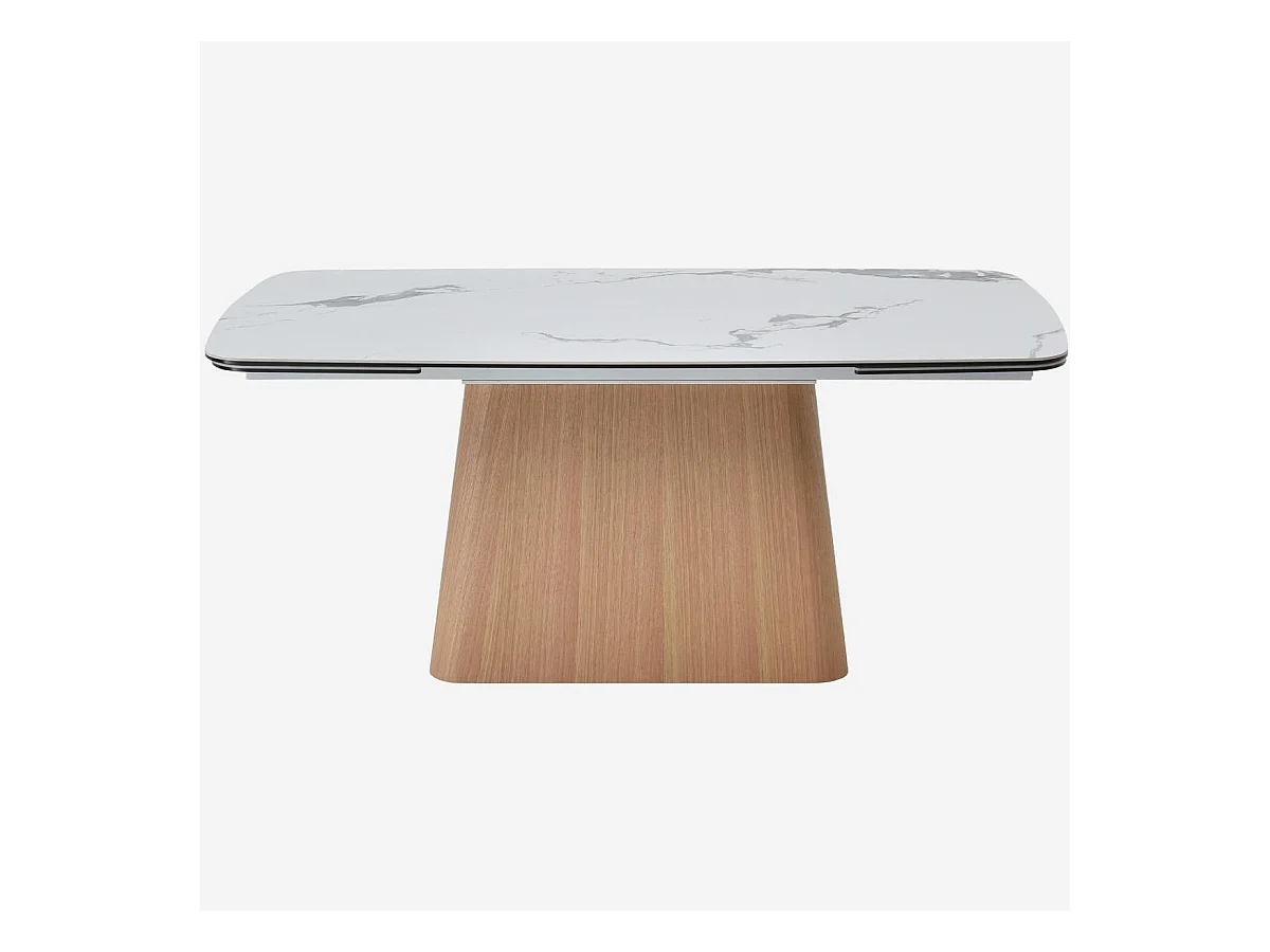 Habitat - Table rectangulaire extensible en céramique et pied finition chêne - Blanc - Linka