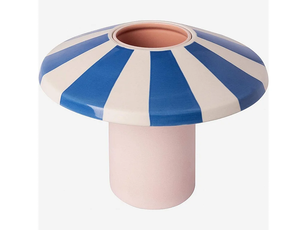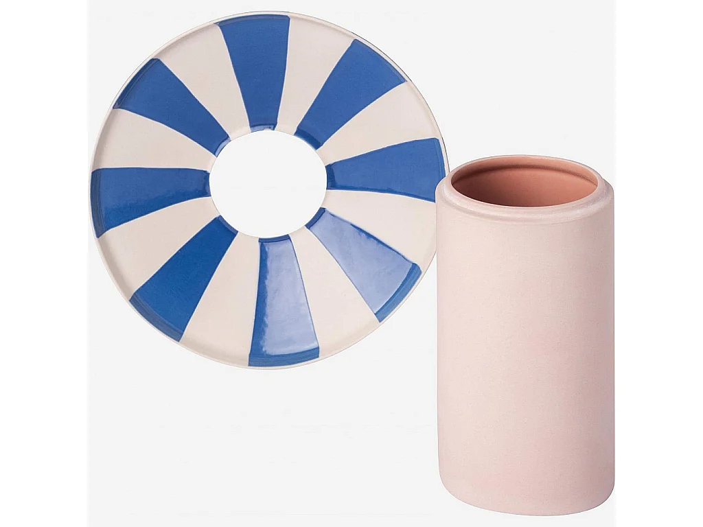 Habitat - Vase en grès - 21 x 19 cm - Rayures bleues - Design by Chloé Le Cam - Ulo