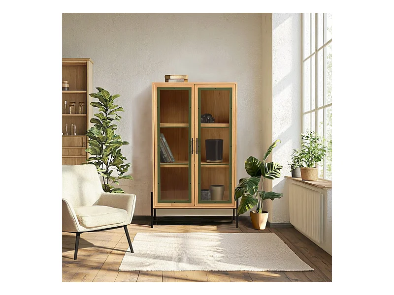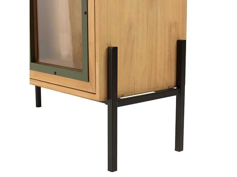 HELENA - Vaisselier 2 portes vitrées vert bois pin et métal noir