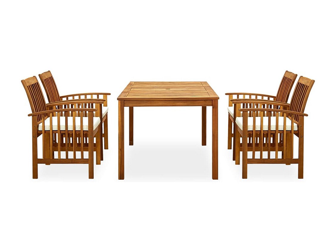 Haenara Ensemble à manger de jardin 5 pcs avec coussins Acacia solide