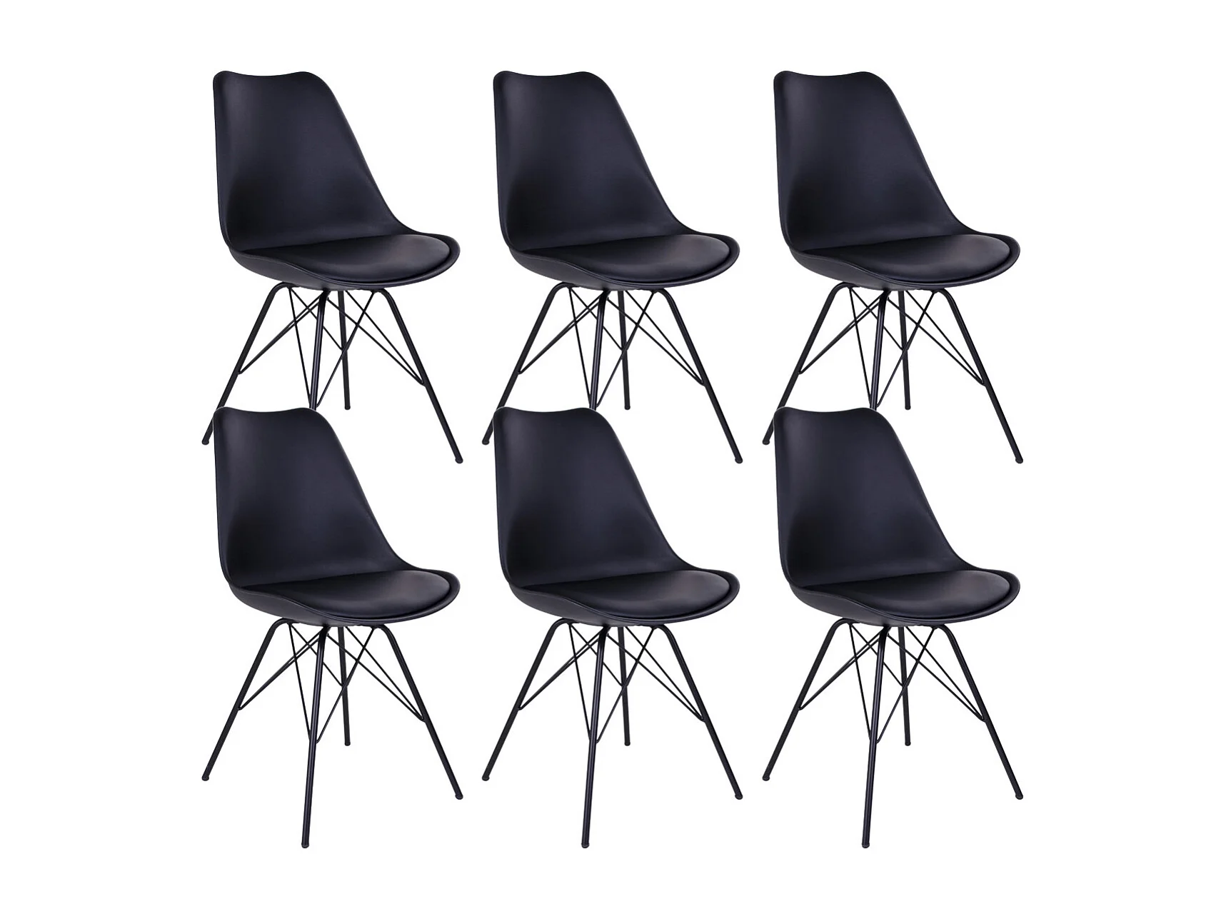HAGA - Lot de 6 Chaises Noires avec Piétement Métallique