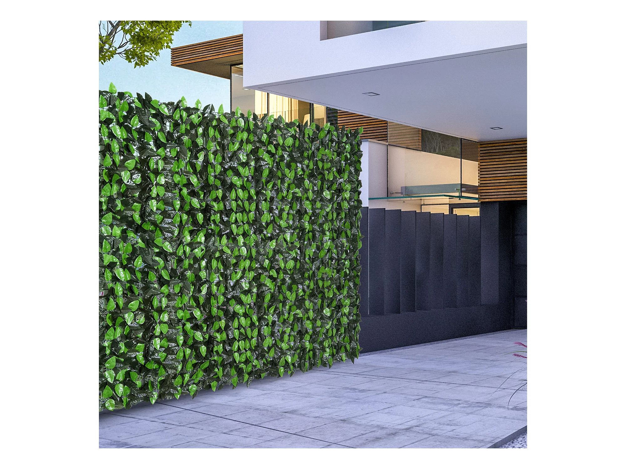 Lot de 2 haies artificielles feuilles de lierre - treillis extensible - brise-vue canisse végétale feuillage réaliste osier polyester