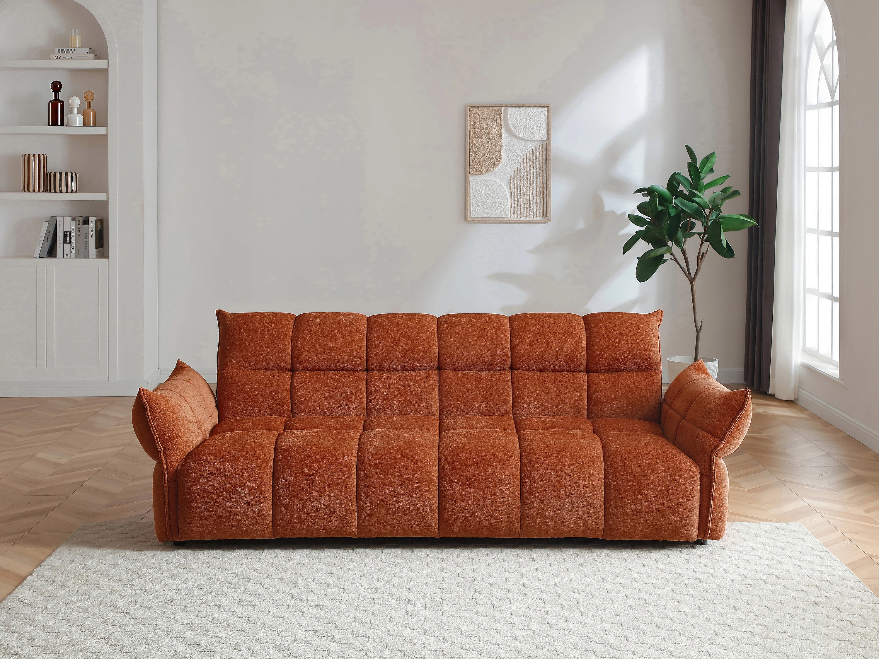 Canapé 3 places convertible clic-clac en tissu chenille terracotta HAKEMO