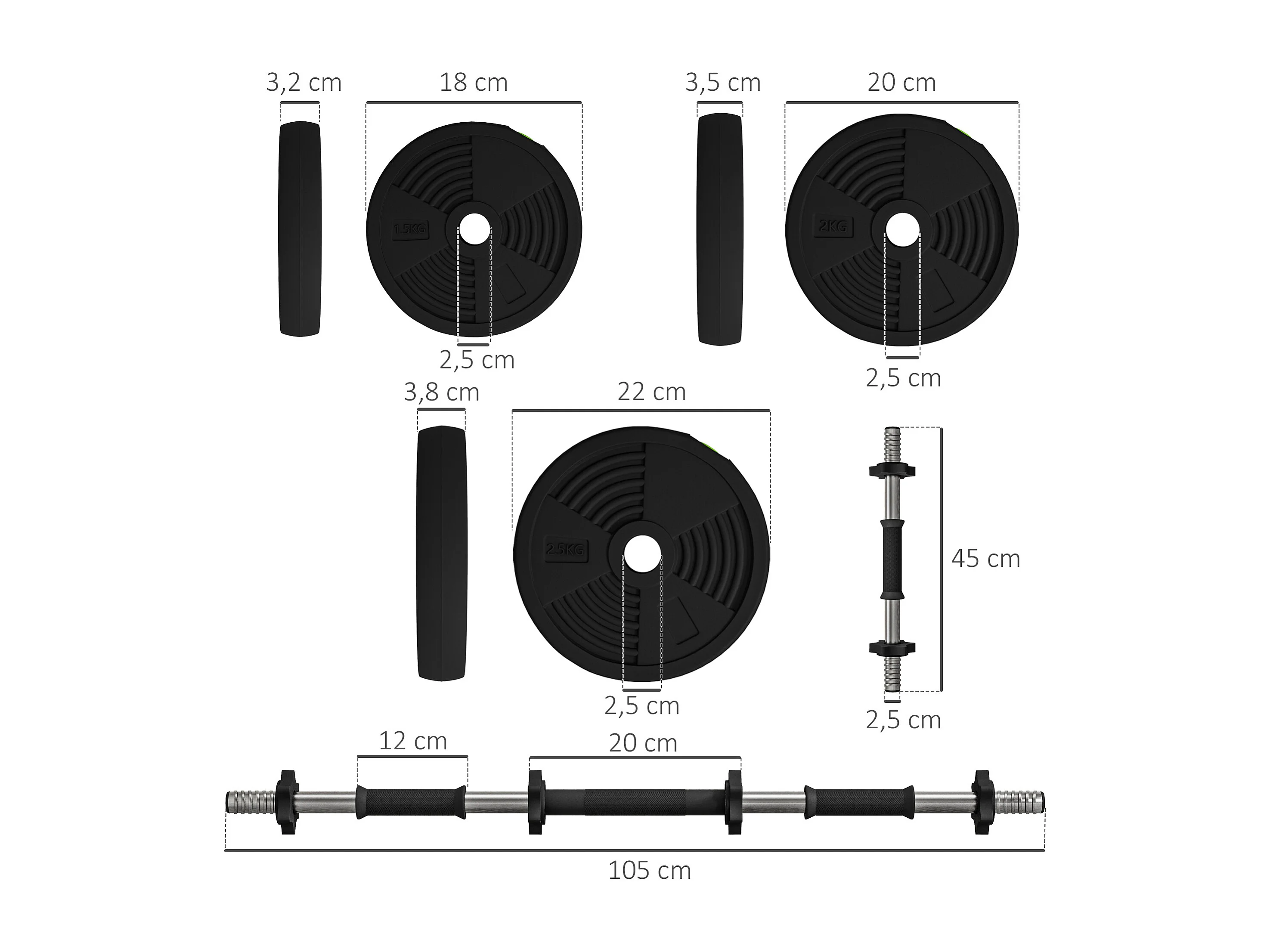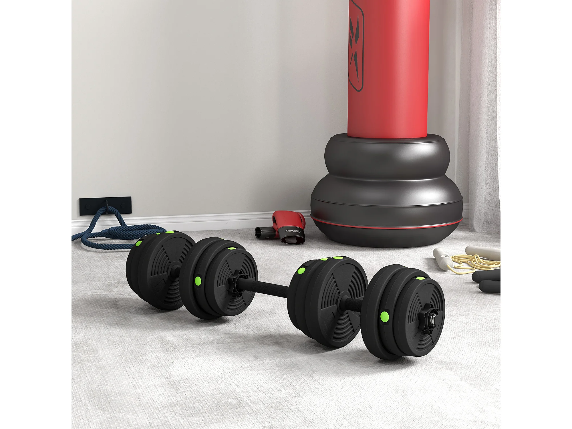 Haltères 2 en 1 réglables - haltères libres 20 Kg - barres incluses - entraînement musculaire & haltérophilie - noir vert