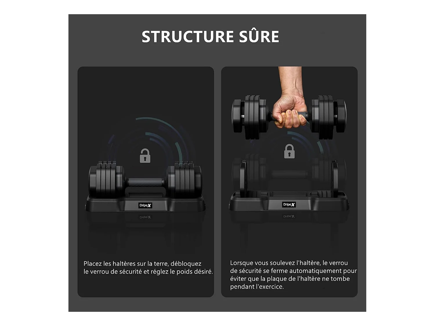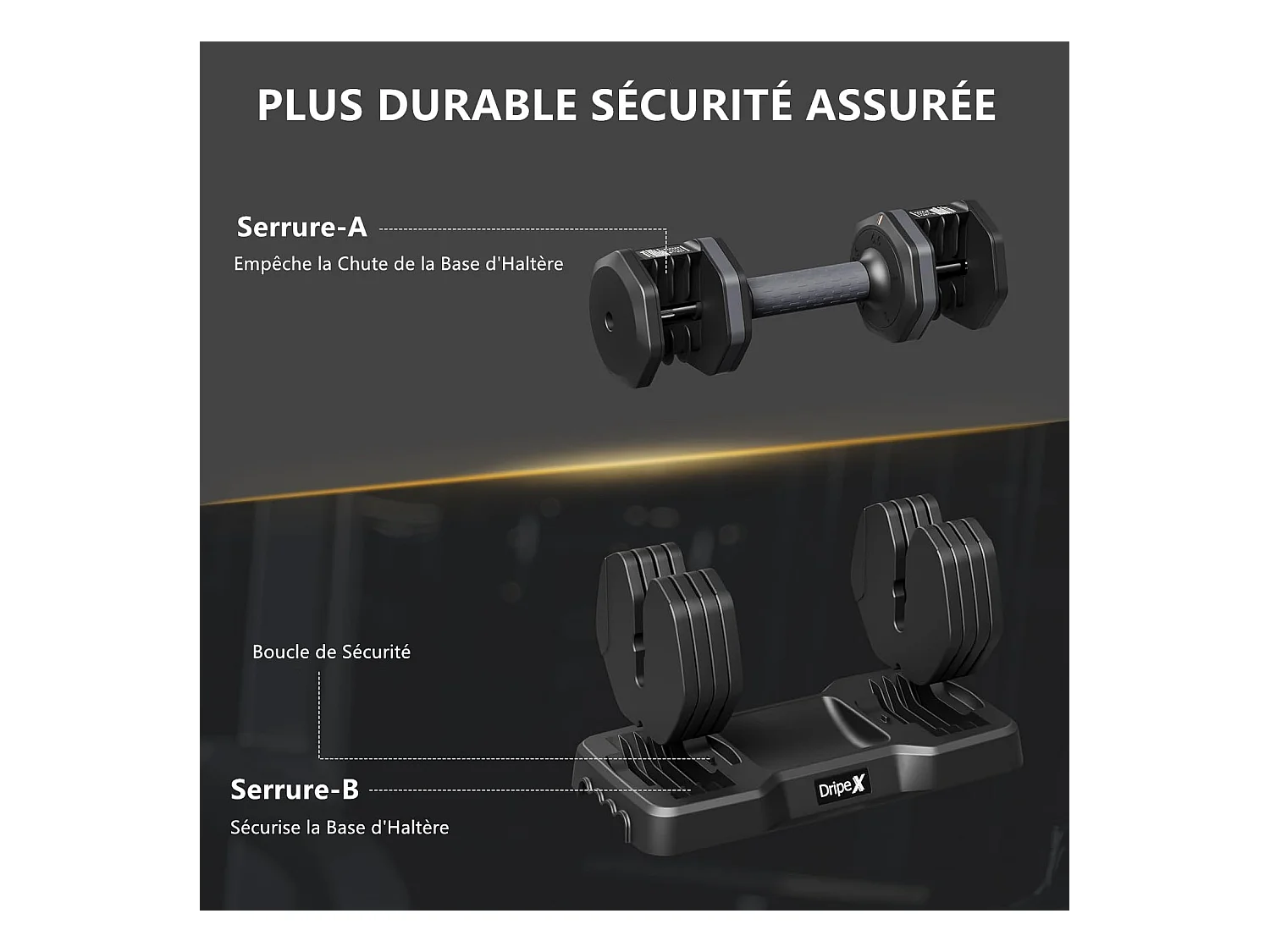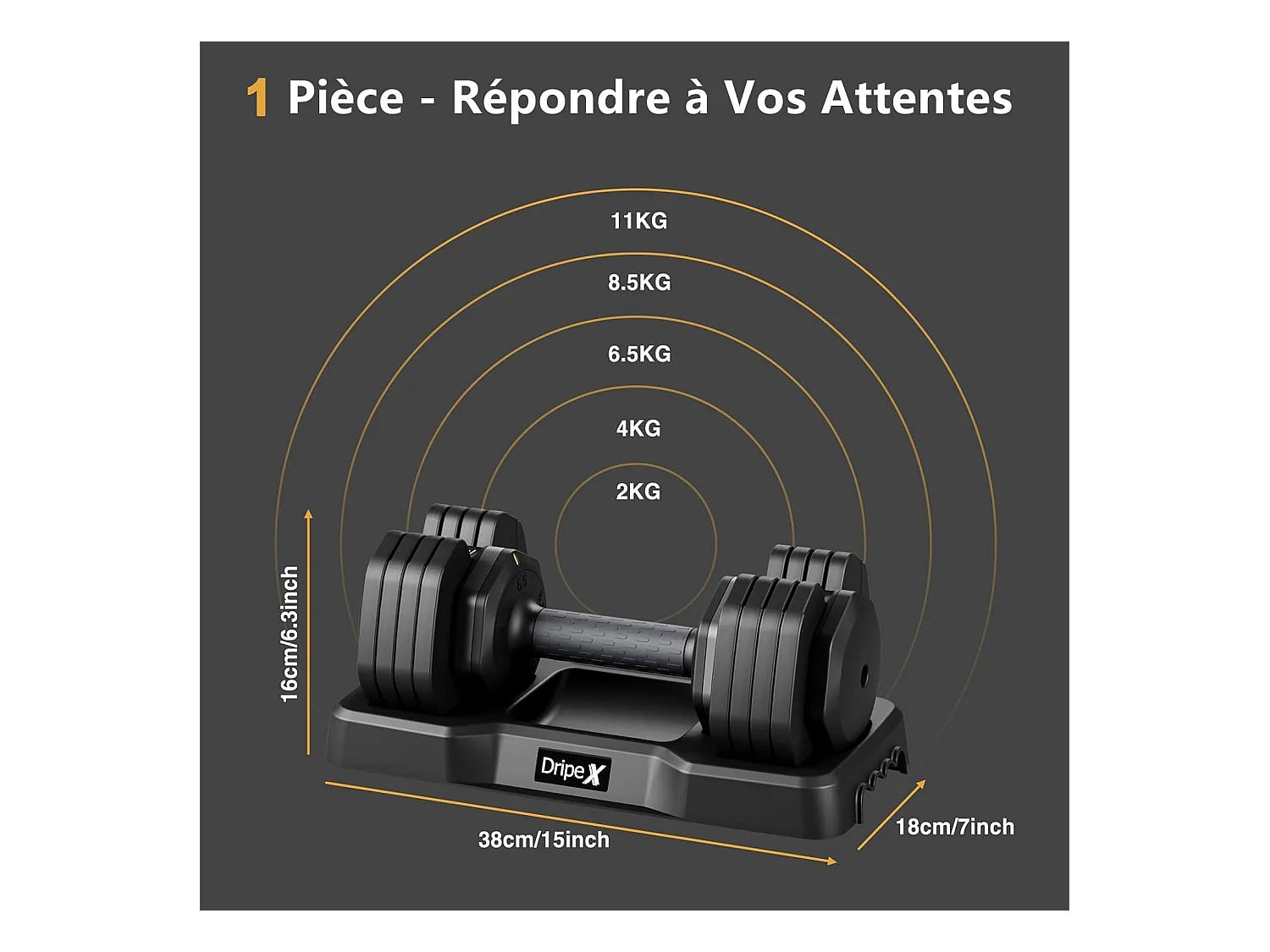 Haltères réglables 2‑24,5 kg, 5/10 en 1, avec base de rangement, compacts et pratiques pour musculation à domicile ou en salle de sport