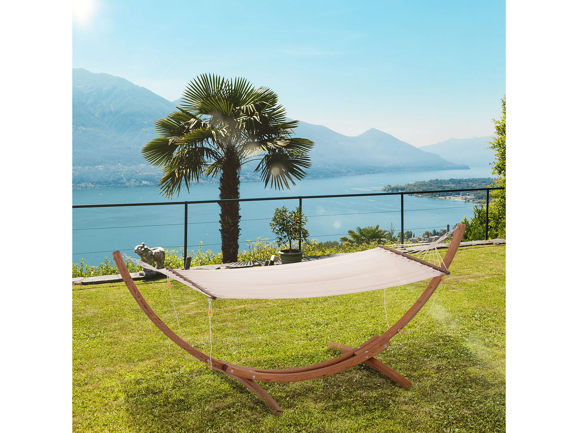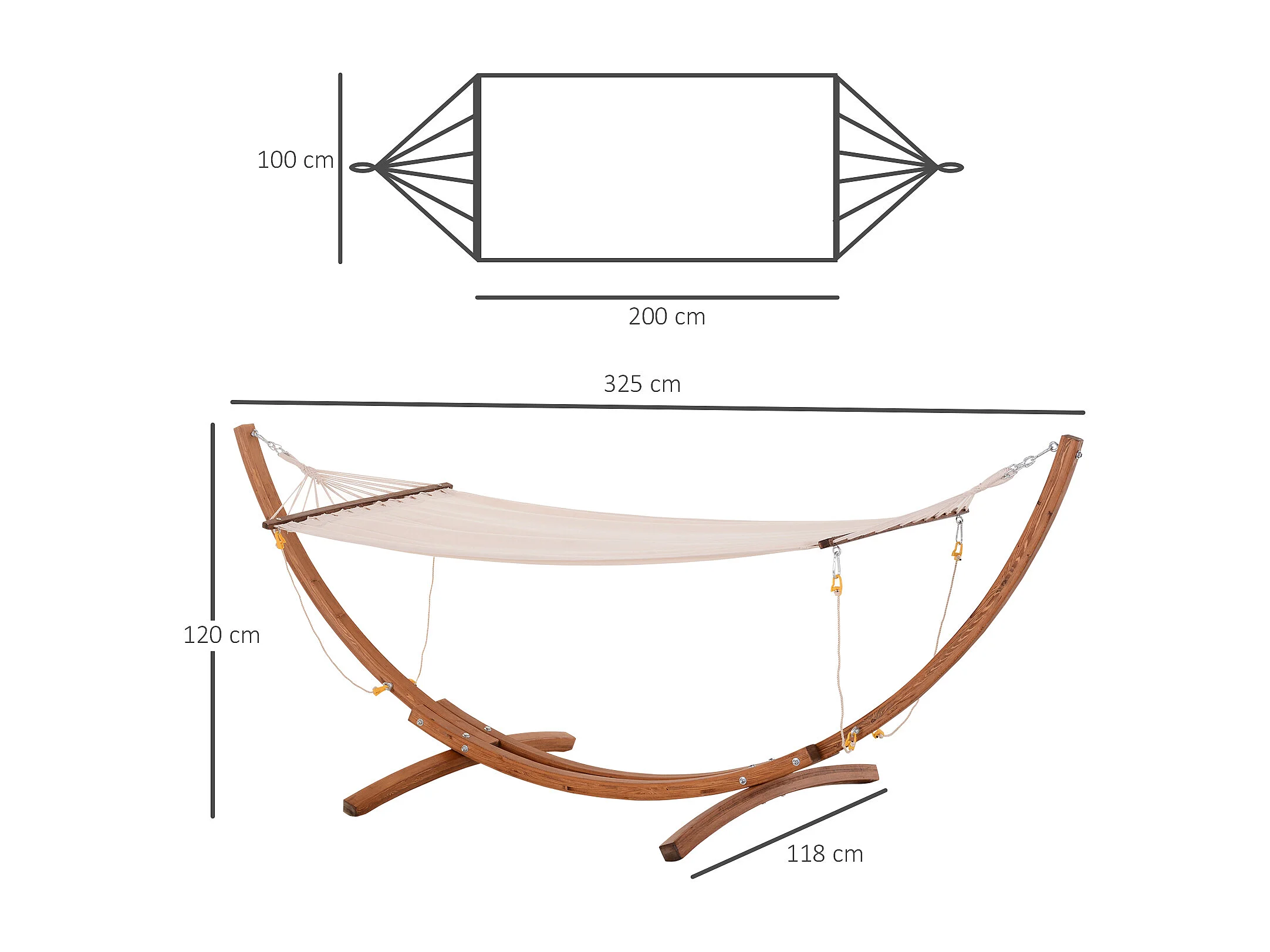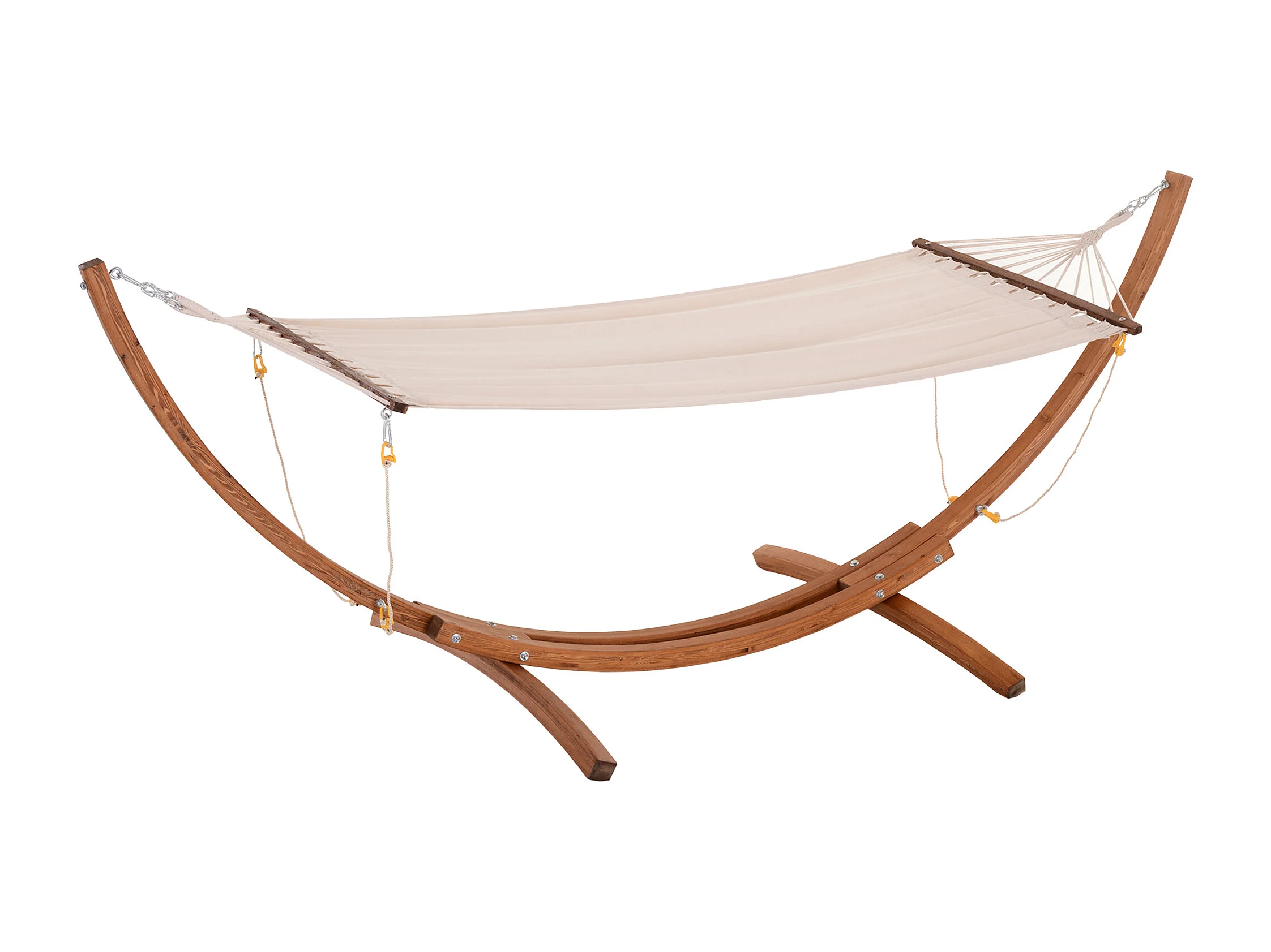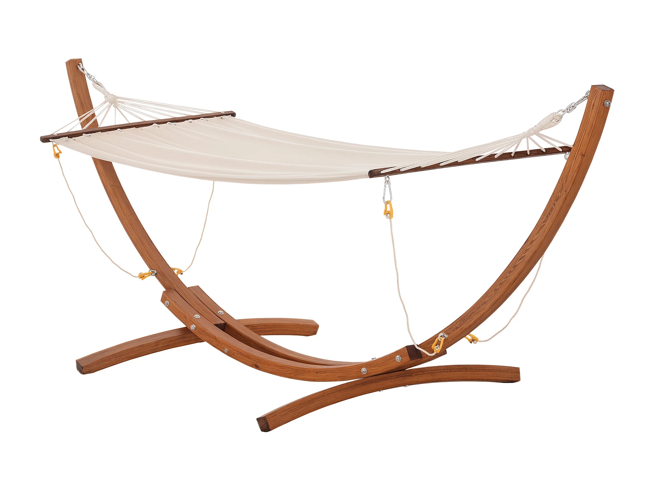 Hamac avec support bois lasuré hamac sur pied 4 cordes de sécurité charge max. 120 Kg coton blanc