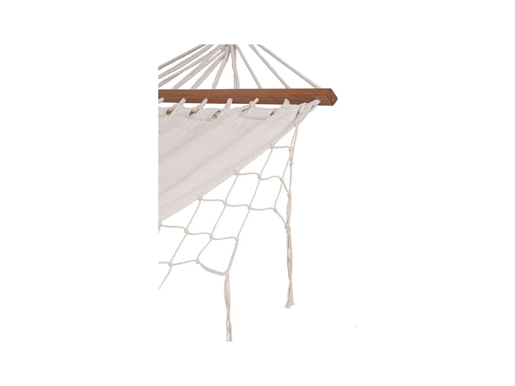 Hamac bois "Dallas XL" - Avec toile en coton et auvent - Ecru