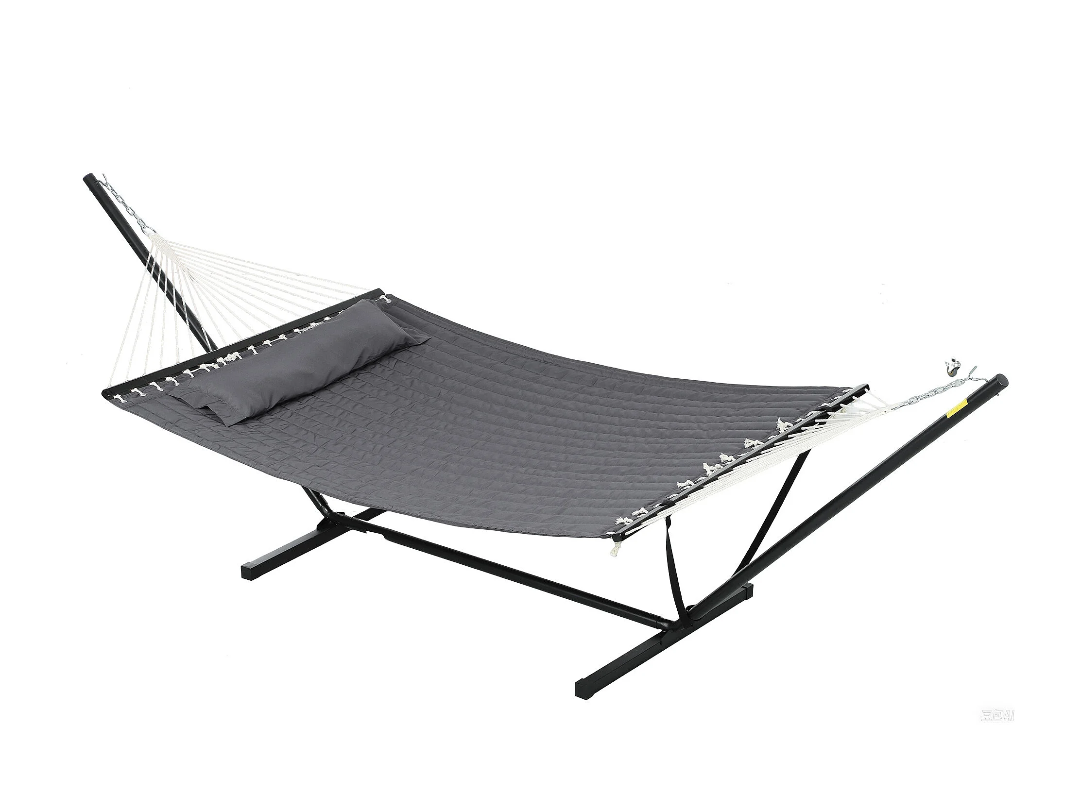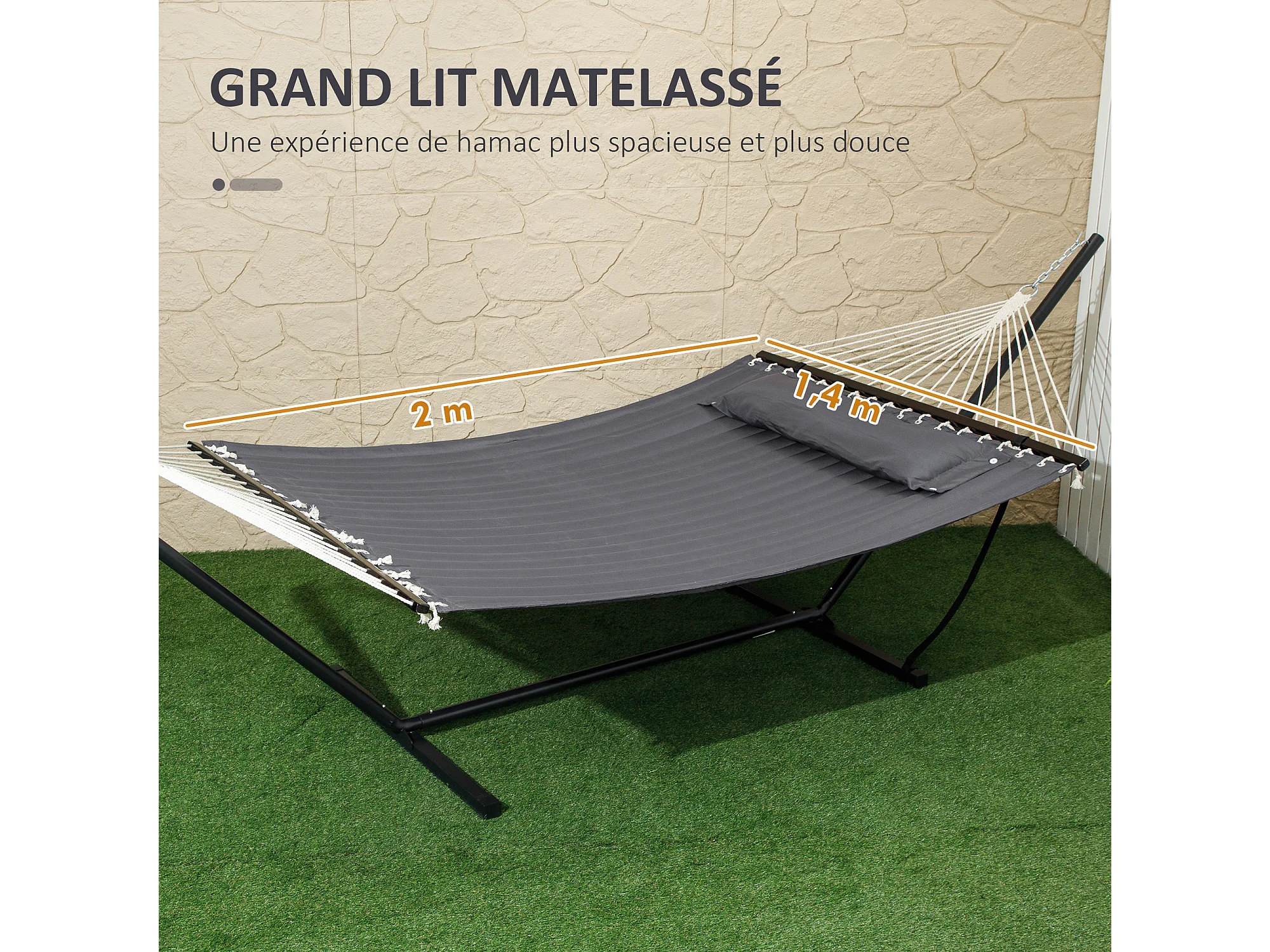 Hamac sur pied 1 place grand confort - tétière, toile matelassé - acier gris foncé