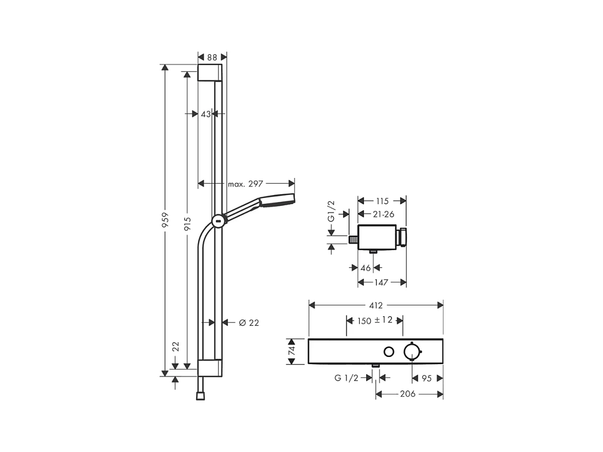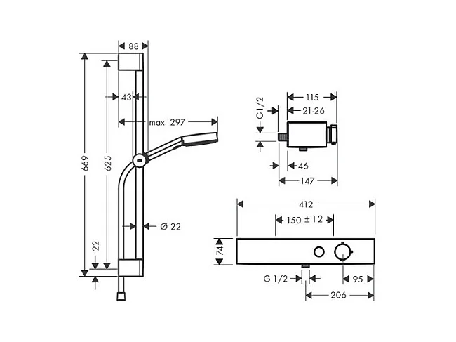 HANSGROHE Combi douche 105 3jet Relaxation avec barre 65 cm ShowerTablet Select 400 chromé