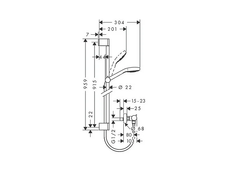 HANSGROHE Combi douche Vario avec barre 90 cm Ecostat Comfort blanc chromé