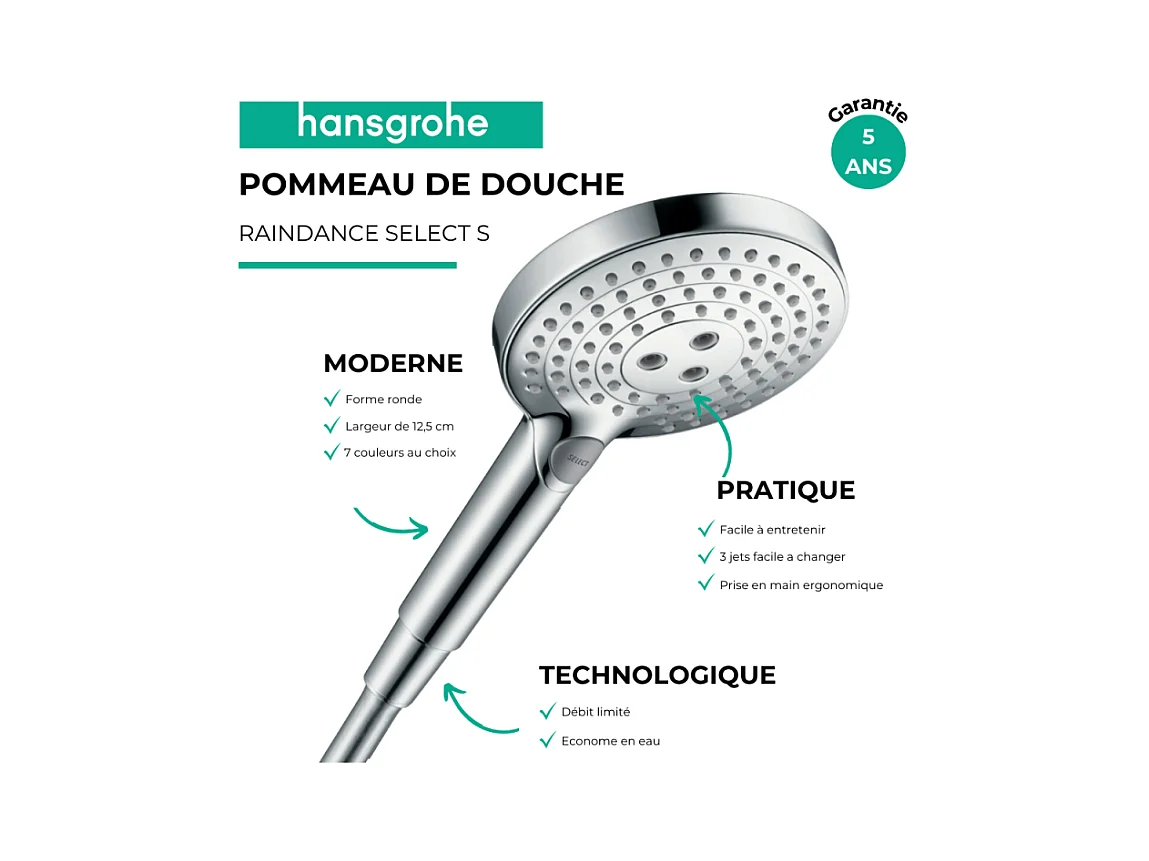 HANSGROHE Douchette à main 120 3jet EcoSmart 9l/min chromé Raindance Select S