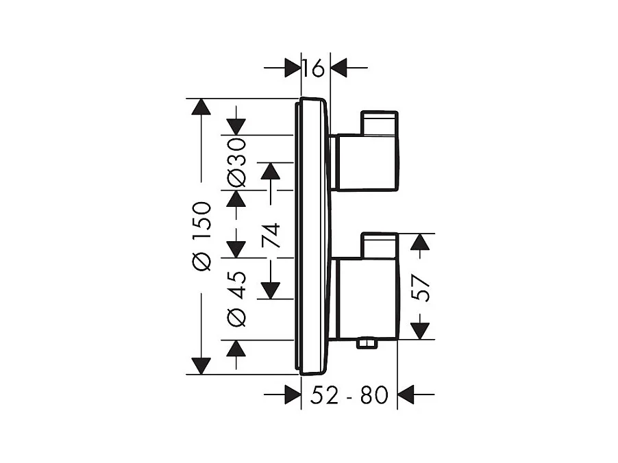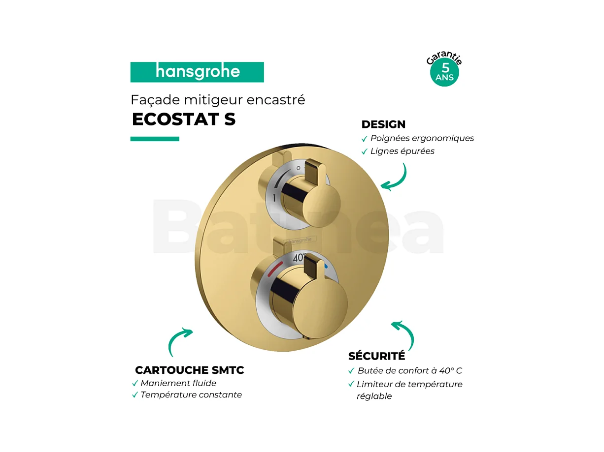 HANSGROHE Facade thermostatique encastré Ecostat S avec robinet d'arrêt et inverseur aspect doré poli + corps encastré