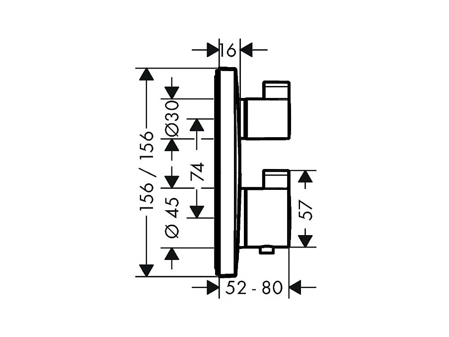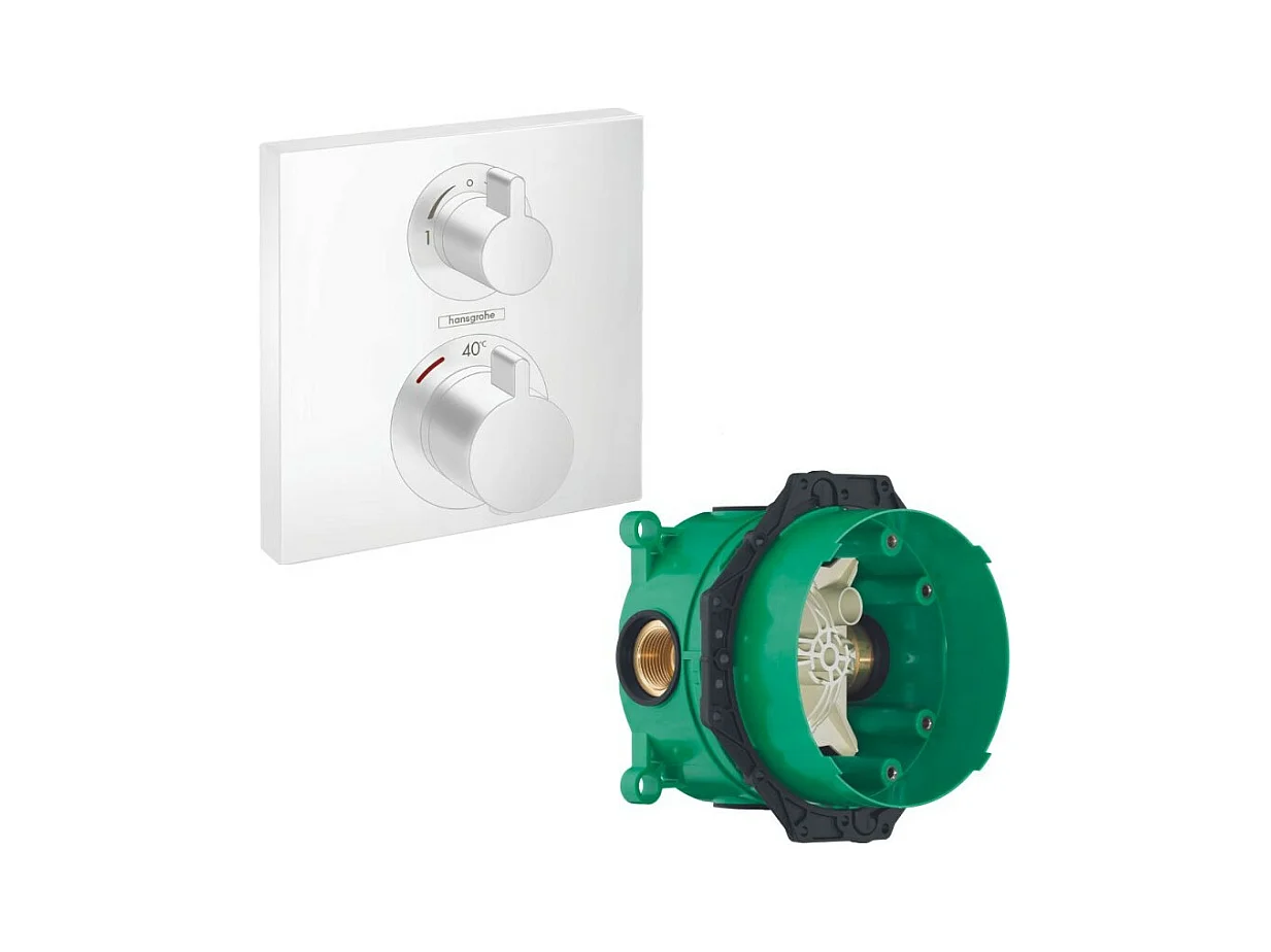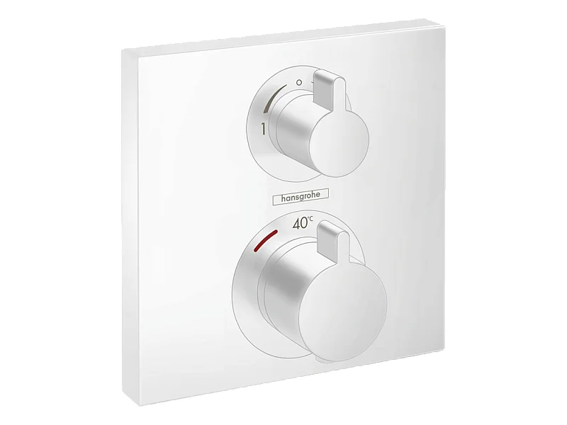 HANSGROHE Facade thermostatique encastré Ecostat Square avec robinet d'arrêt et inverseur blanc mat + corps encastré