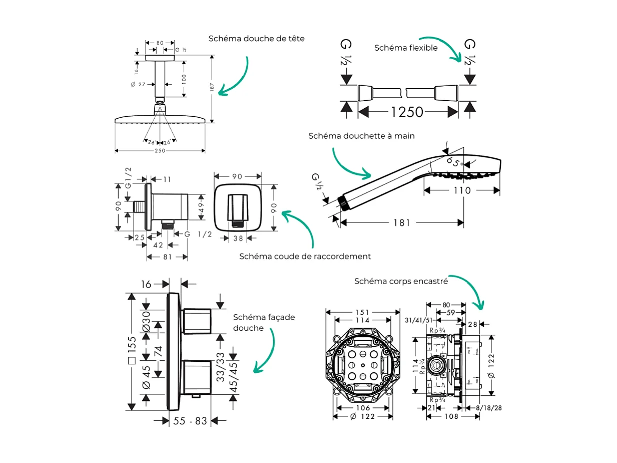 Colonne de douche encastrée thermostatique HANSGROHE Raindance E 240 raccord plafond