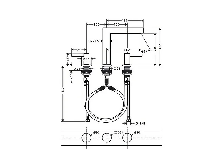 HANSGROHE Mélangeur de lavabo 3 trous 160, bonde Push-Open Finoris blanc mat