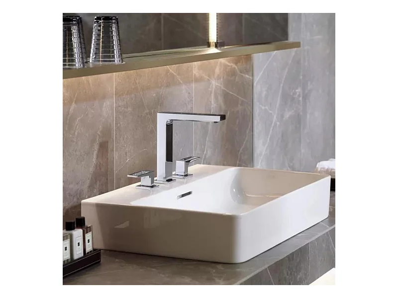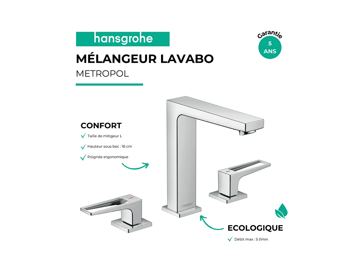 Mélangeur lavabo HANSGROHE 160 3 trous poignée étrier chrome + nettoyant Briochin