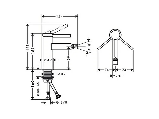 HANSGROHE Mitigeur de bidet, bonde Push-Open blanc mat Finoris
