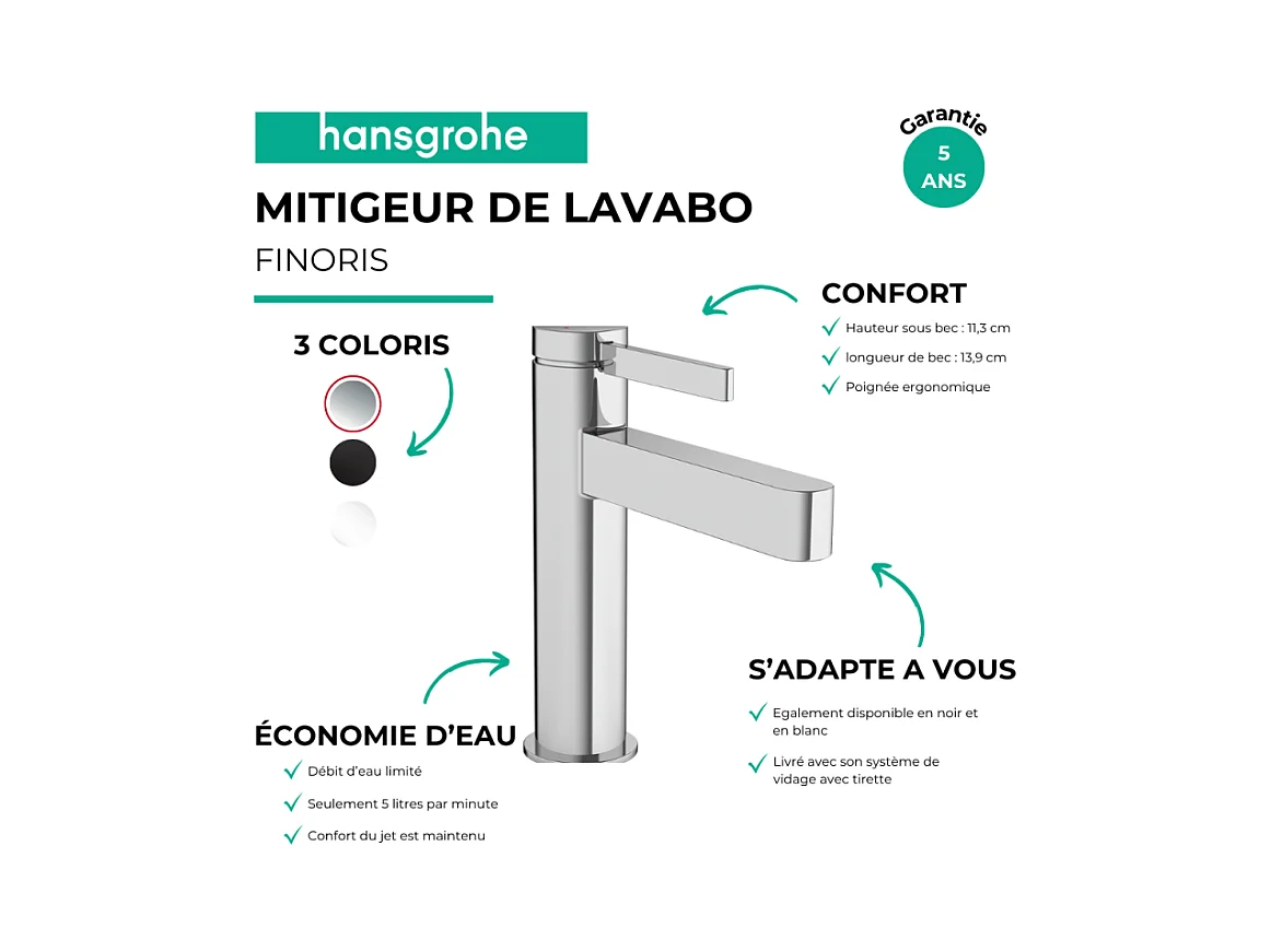 HANSGROHE Mitigeur de lavabo 110 avec tirette et vidage chromé Finoris