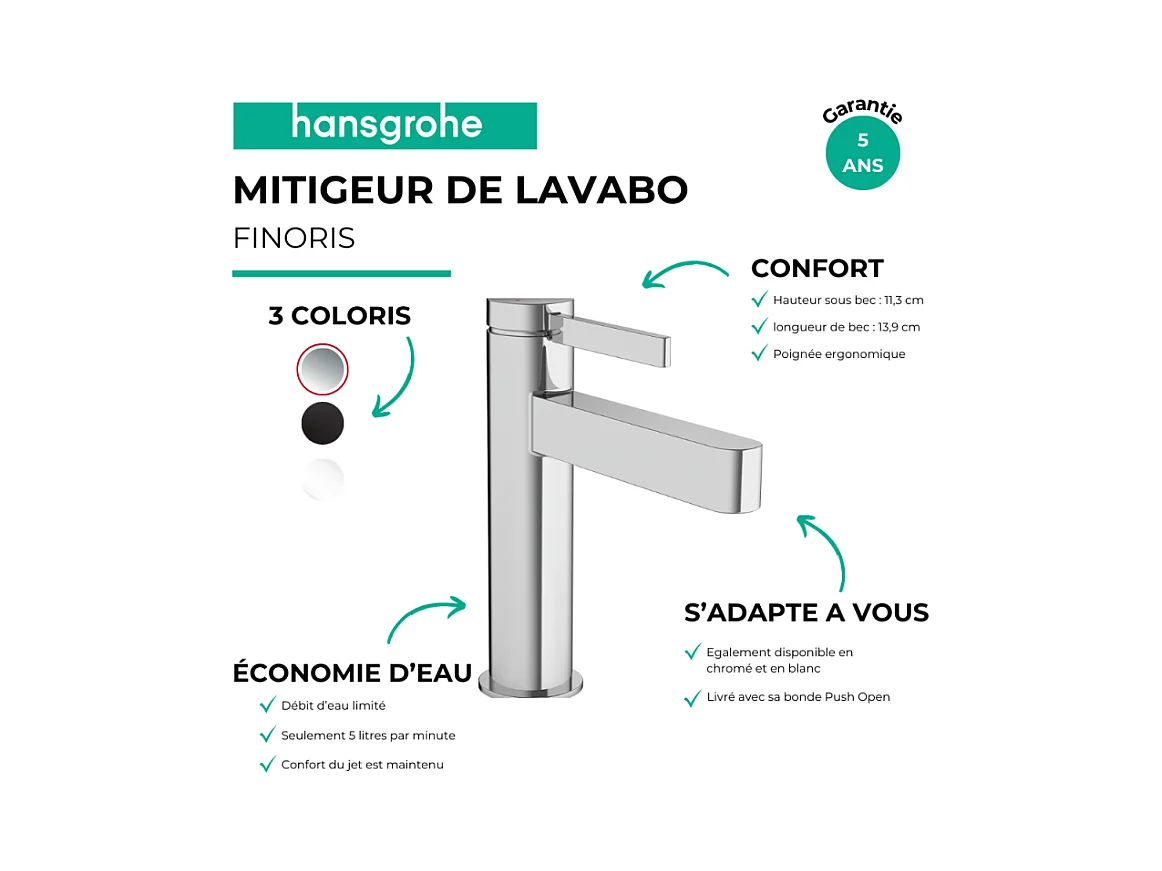 Lot de 2 mitigeurs lavabo HANSGROHE Finoris 110 avec bonde Push-Open chromé
