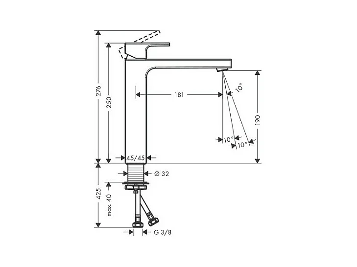 HANSGROHE Mitigeur de lavabo 190 sans tirette ni vidage noir mat