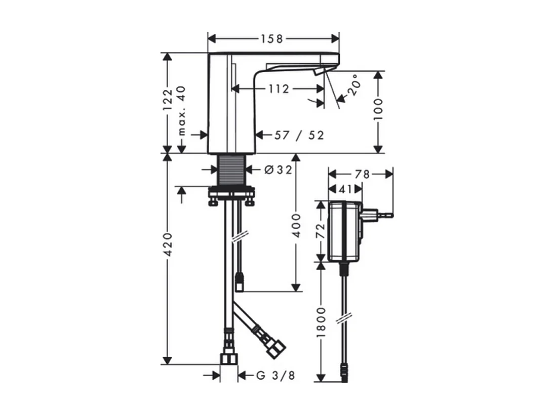 HANSGROHE Mitigeur de lavabo électronique Vernis Blend avec pré-réglage de la température sur secteur chromé