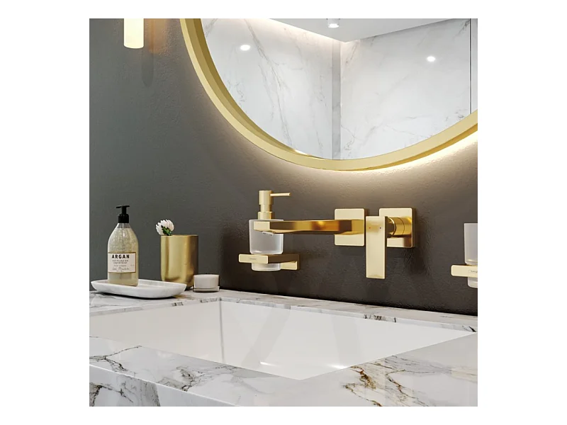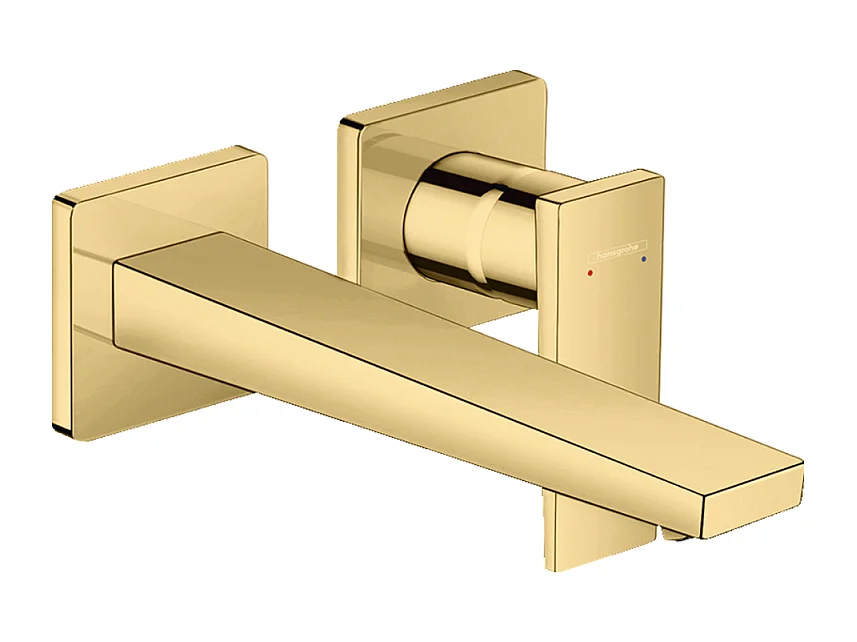 HANSGROHE Mitigeur de lavabo encastré mural, bec 225mm, poignée manette, bonde à écoulement libre aspect doré poli