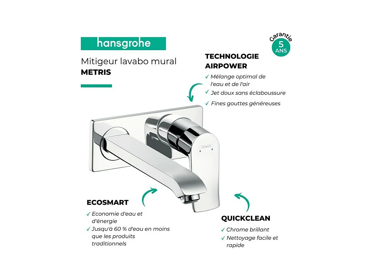 HANSGROHE Mitigeur lavabo encastré mécanique Metris 225 mm + corps encastré