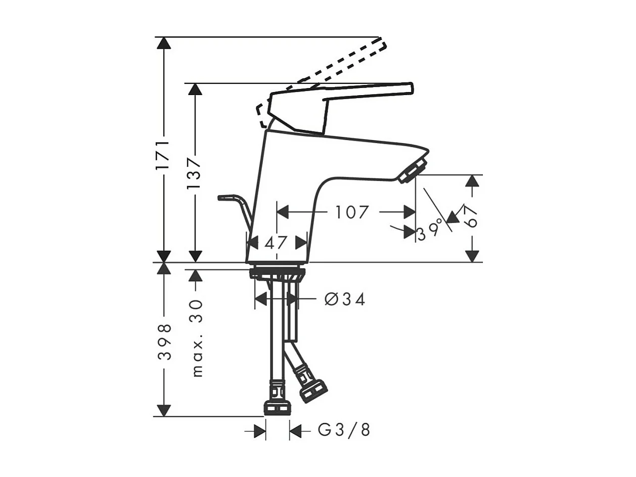 HANSGROHE Mitigeur lavabo Logis Loop 70 Eco CH3 CoolStart, avec tirette et vidage synthétique chromé