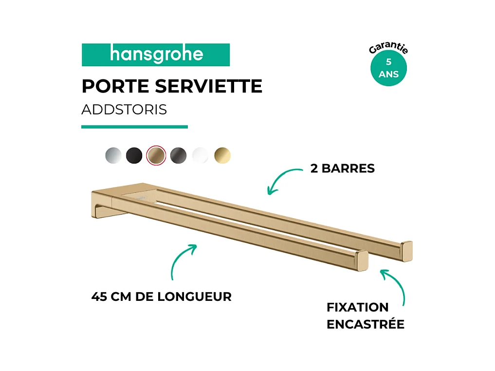 Porte-serviettes HANSGROHE AddStoris double branche 45 cm bronze brossé