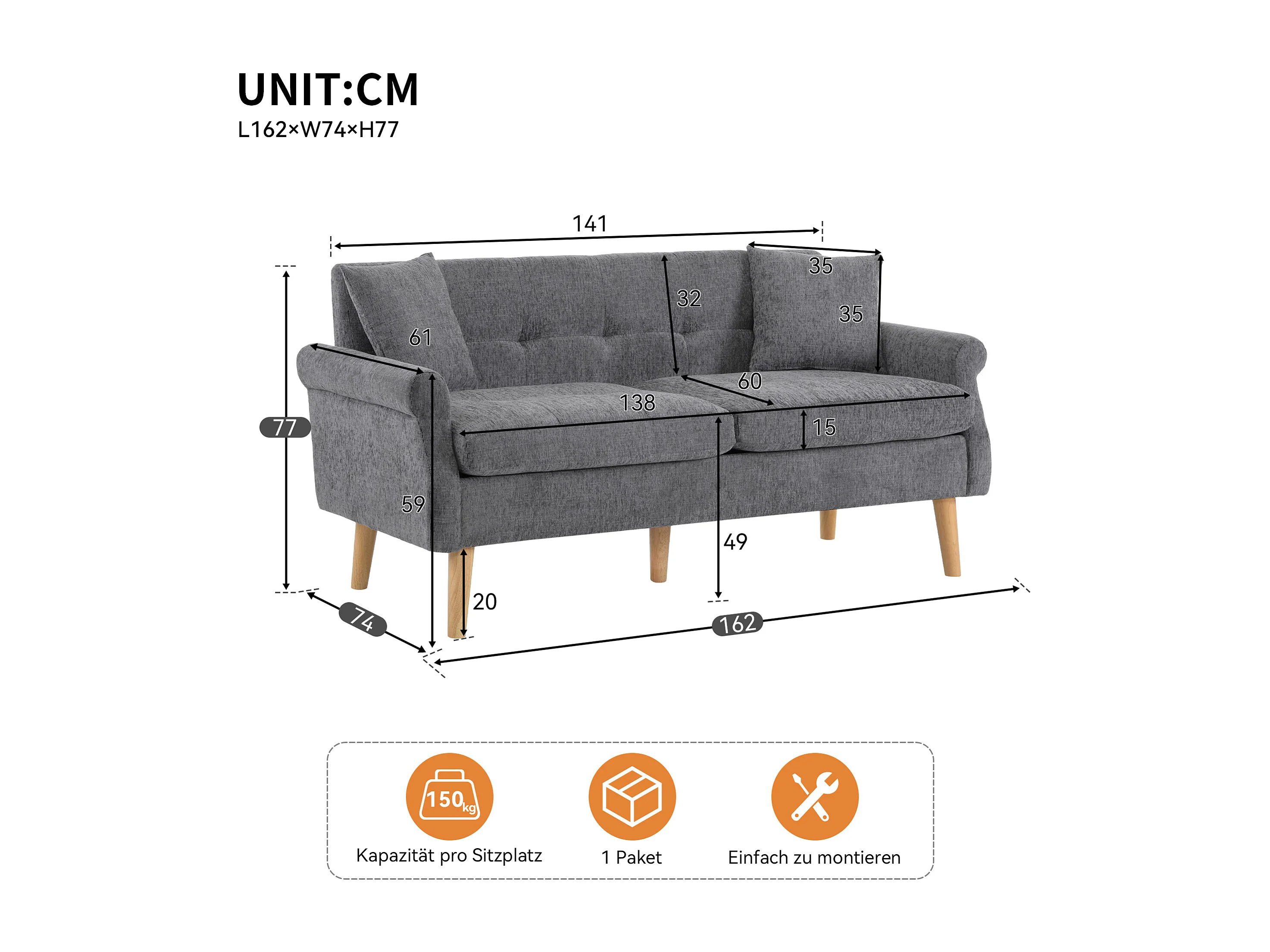 Haobosic - Canapé Moderne en Tissu Chenille, 2 Places, Design Ergonomique avec Accoudoirs Élégants, Pieds en Bois Massif, Confort Extra