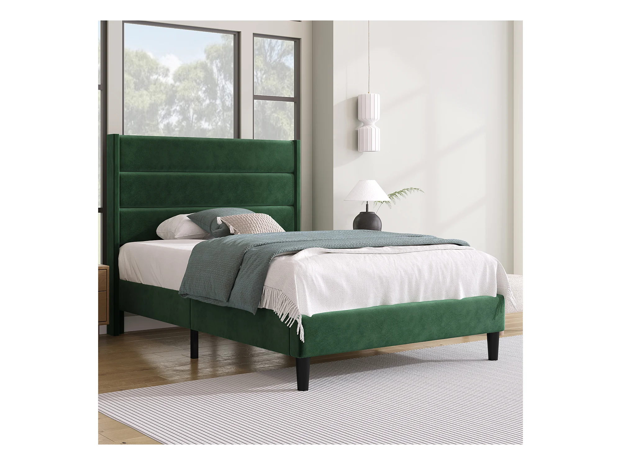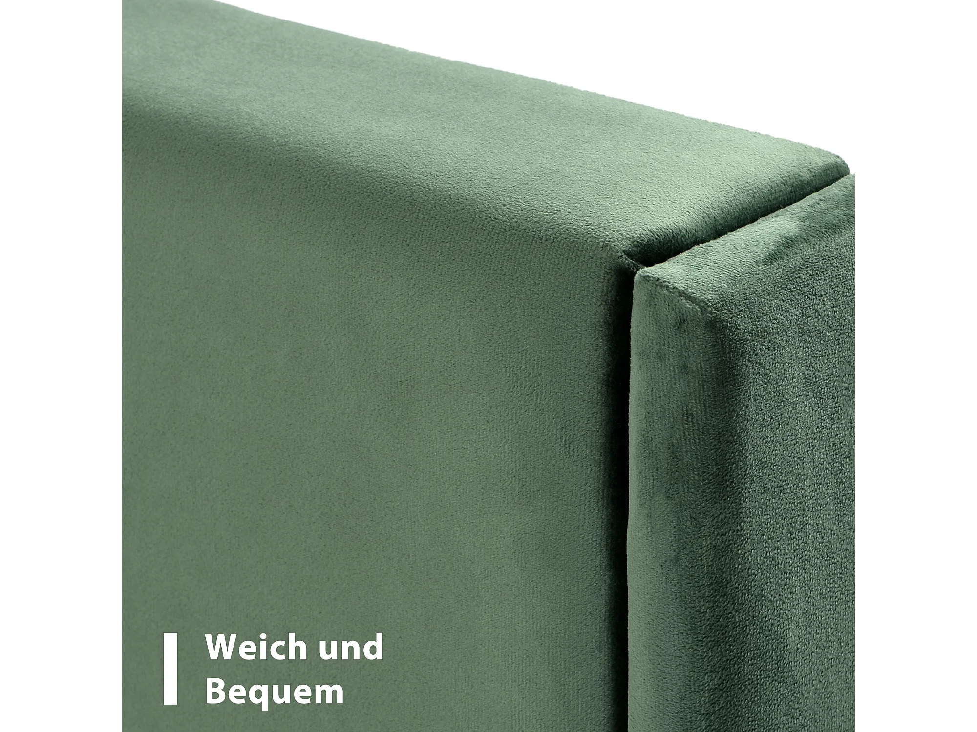 Haobosic - Lit Adulte 90 x 200 cm avec Tête de Lit et Sommier, Lit Double Rembourré, Tissu Velours Vert Foncé, Design Moderne et Intemporel