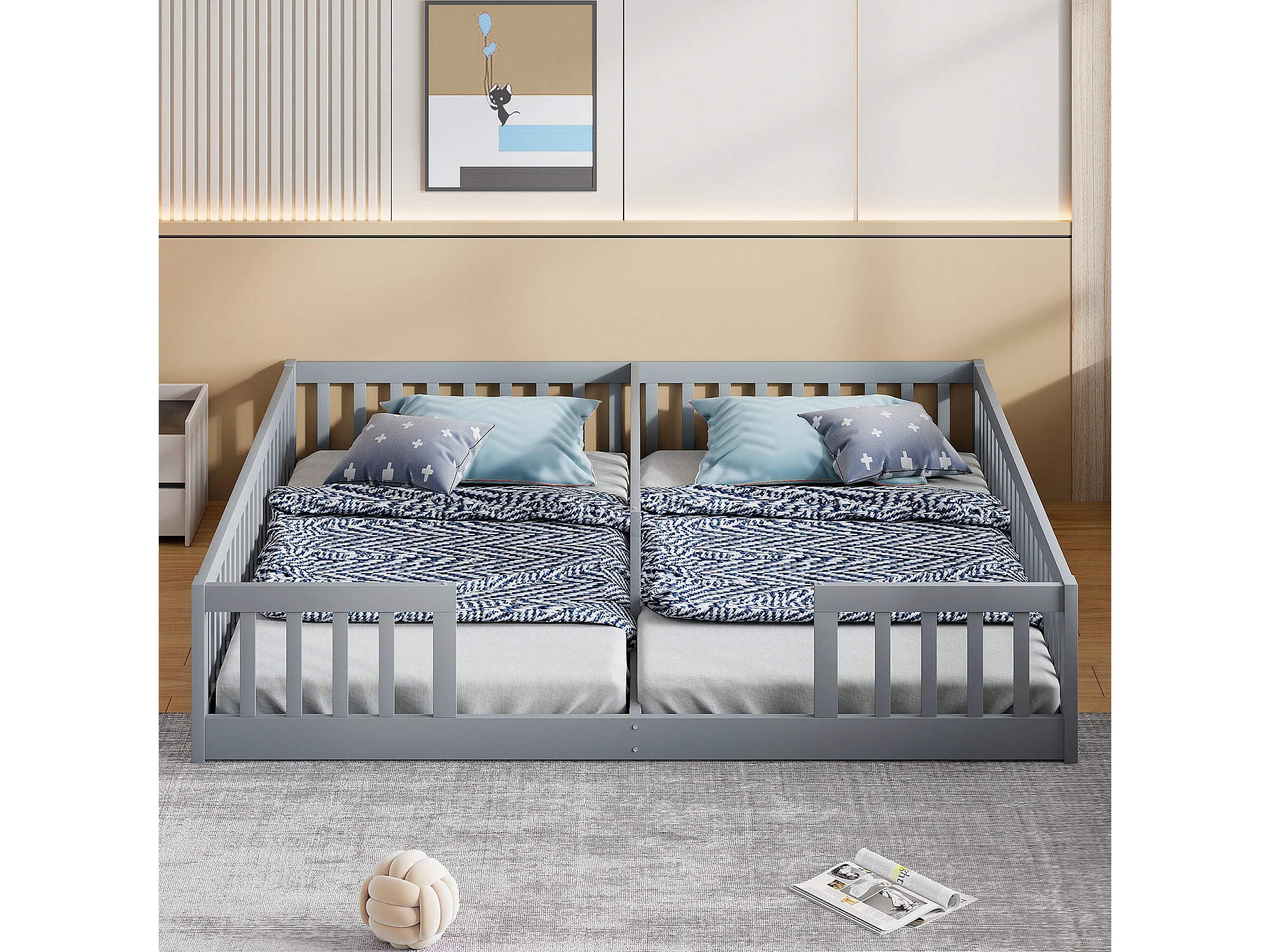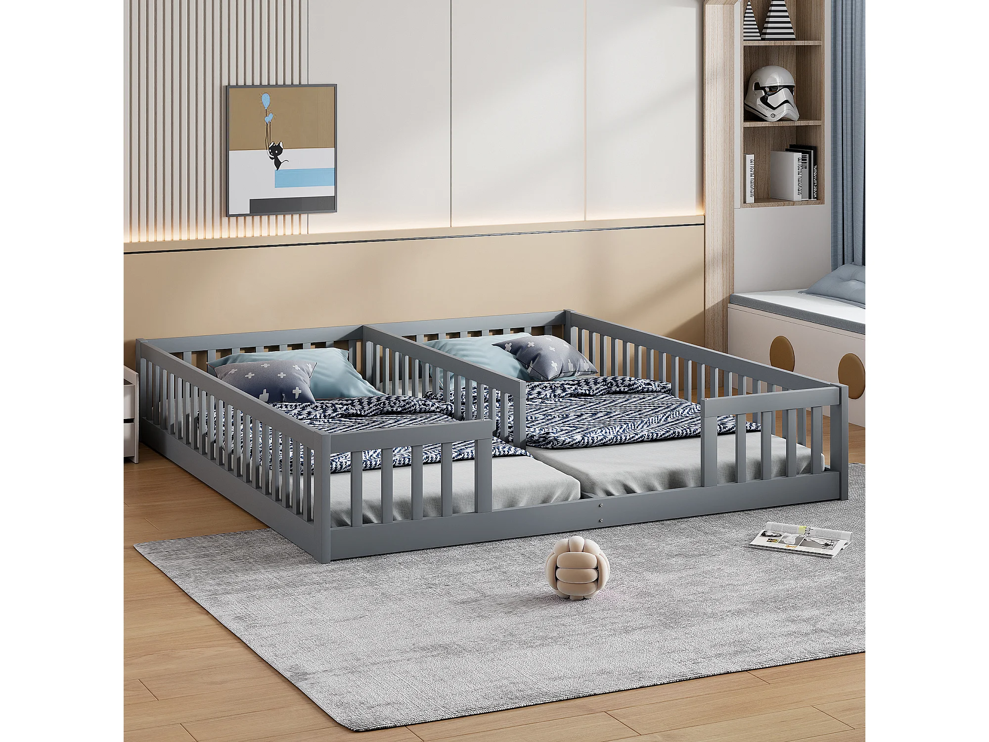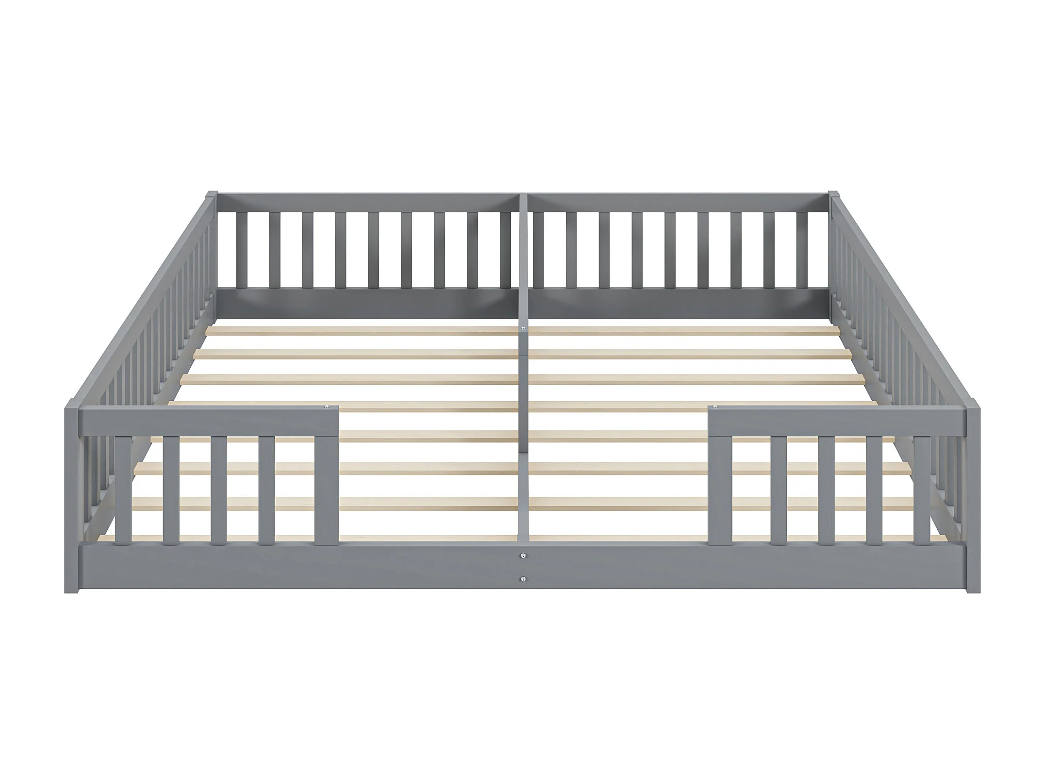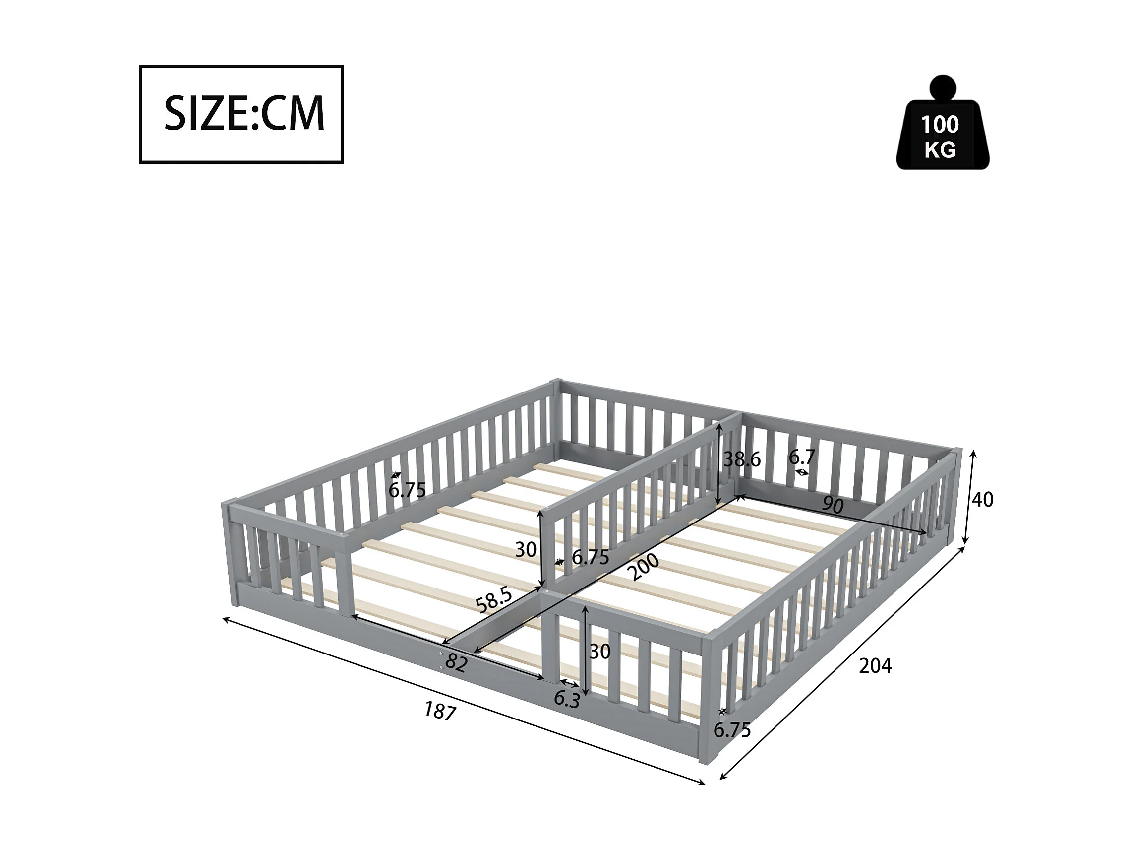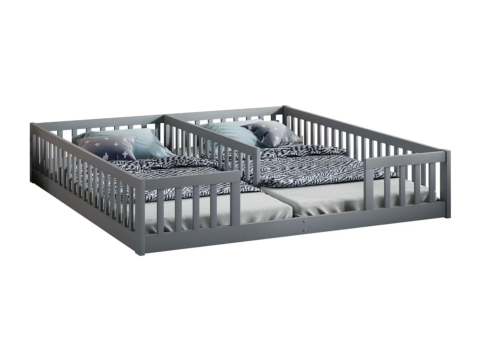 Haobosic - Lit Enfant 90 x 200 cm avec Barrières de Sécurité, Lit Simple avec Sommier (Matelas non inclus), Bois de Pin et MDF,Gris