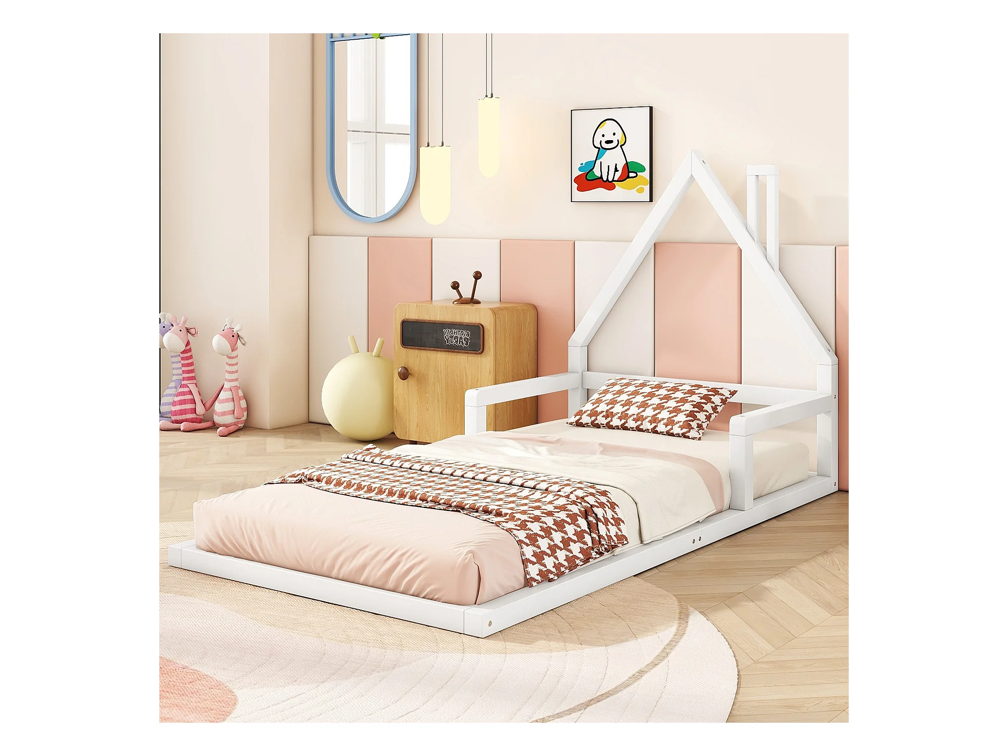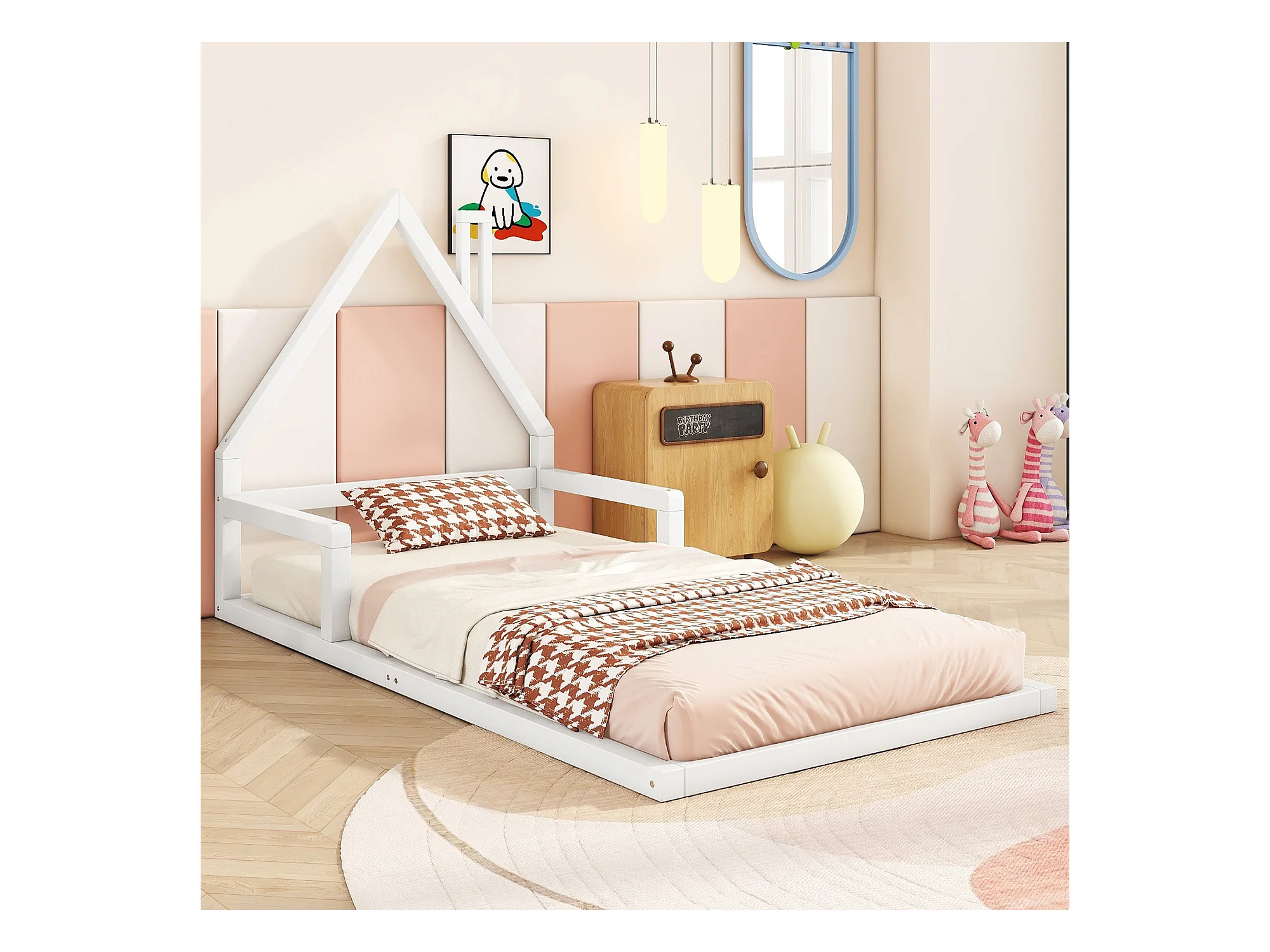 Haobosic - Lit Enfant 90 x 200 cm, Lit Plat en Forme de Maison, Bois Massif de Pin, Design Simple et Élégant, Blanc (sans Matelas)