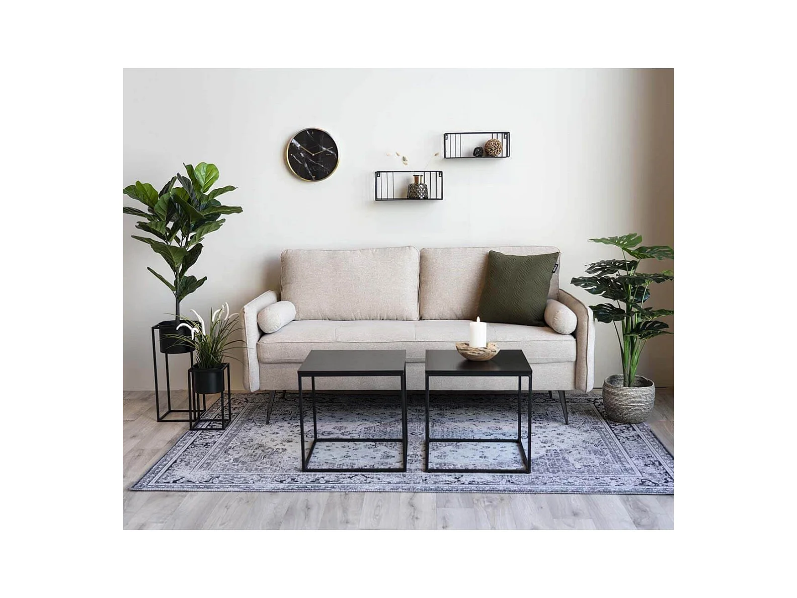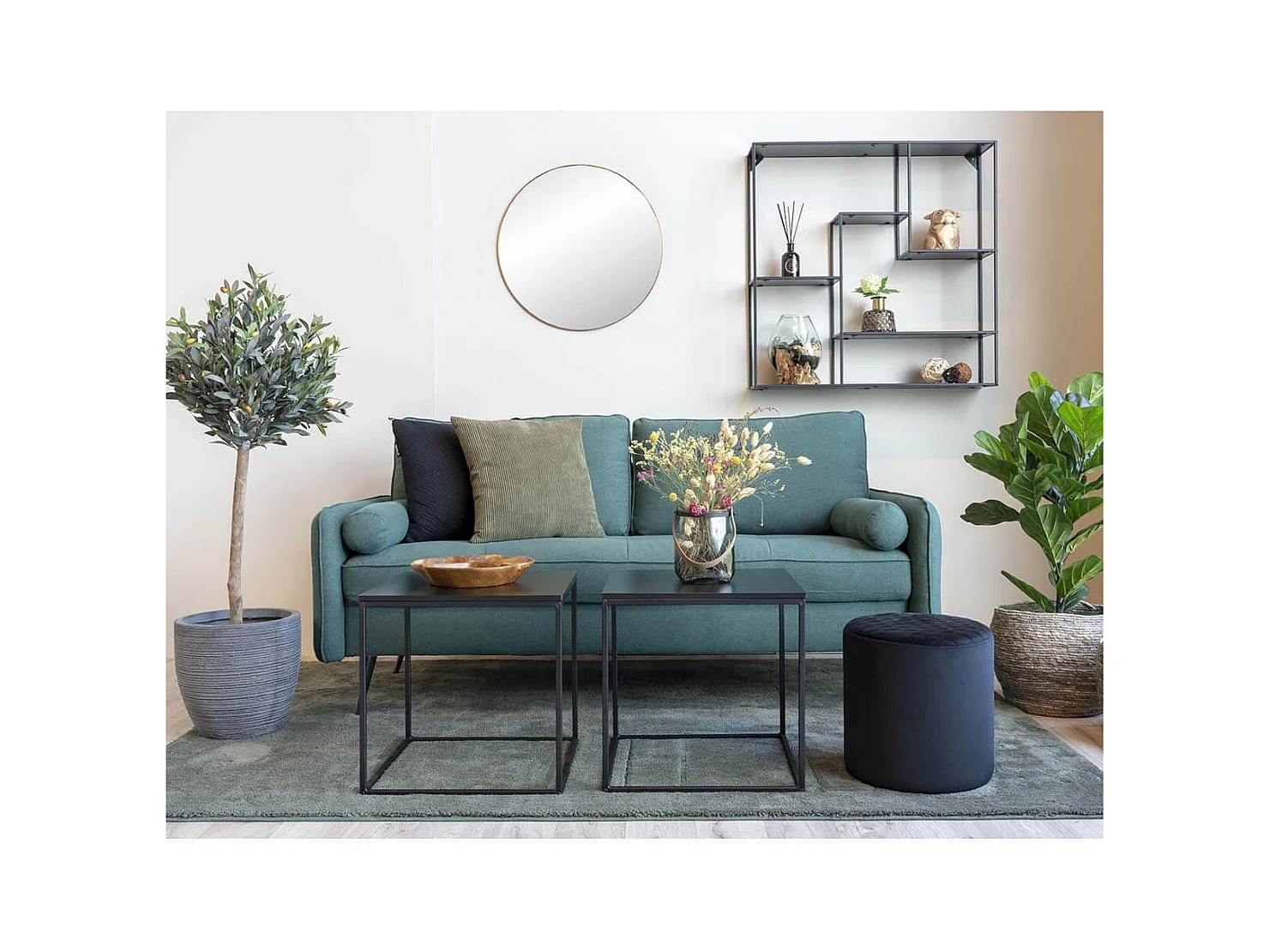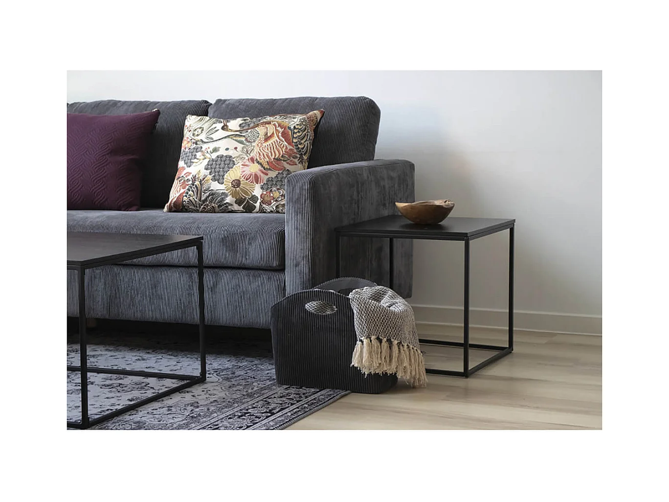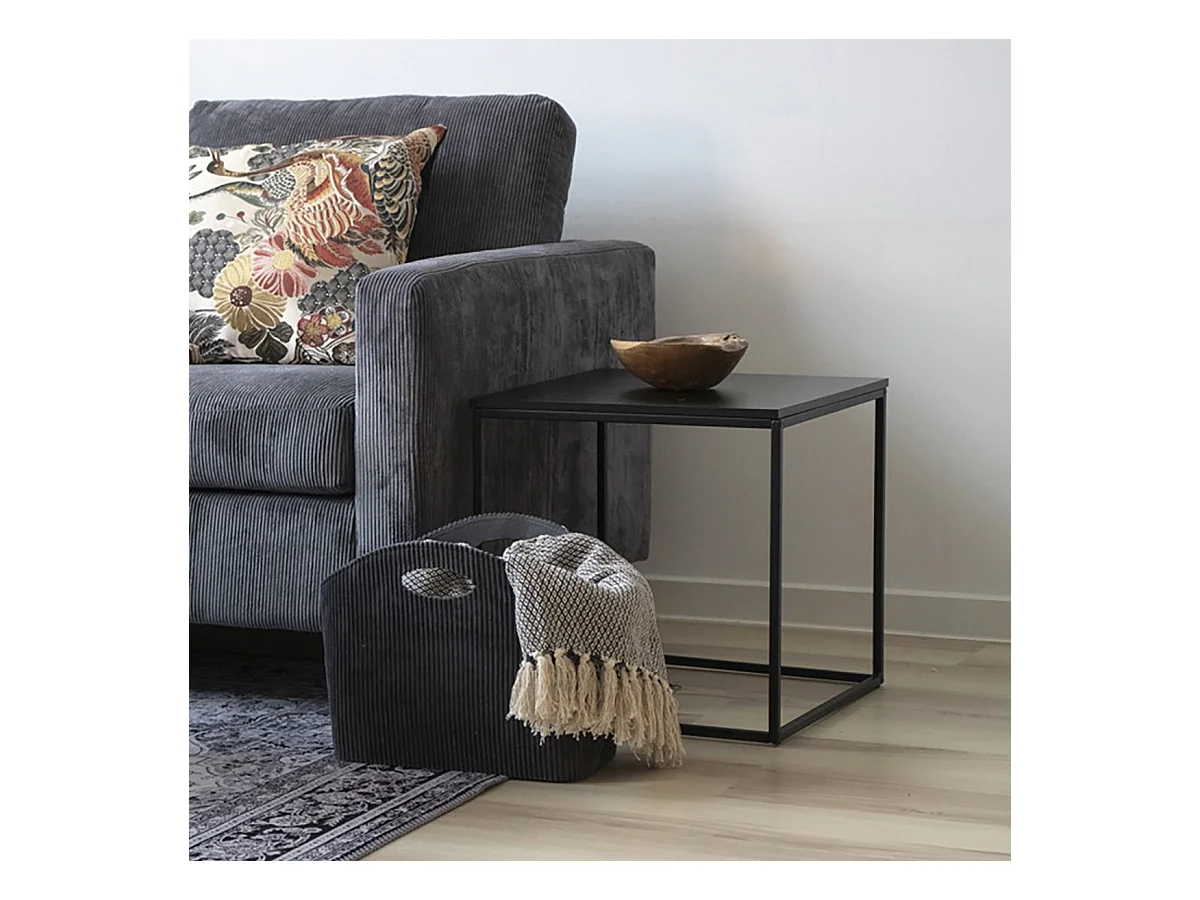 HARALD - Bout de Canapé Carré Acier et Aspect Bois Noir