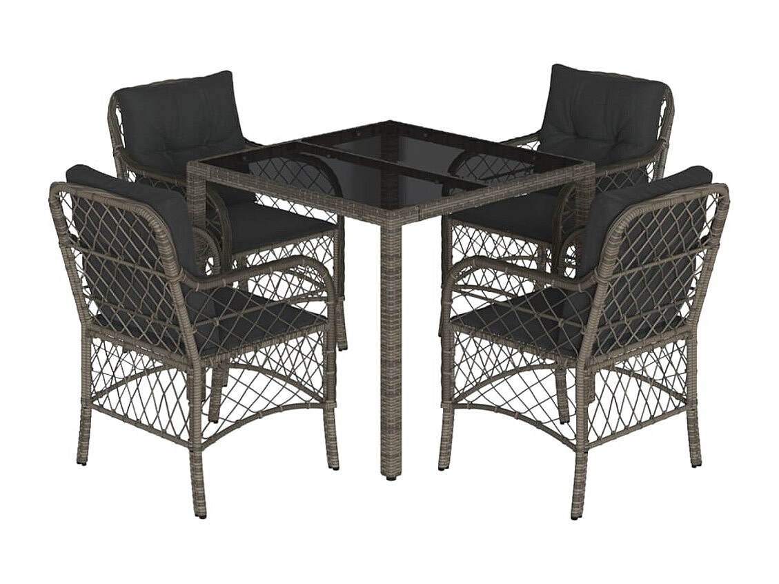 Harmelen Ensemble à manger de jardin 5 pcs coussins gris résine tressée