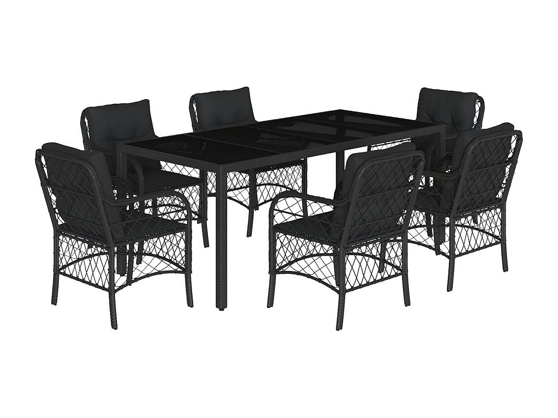 Harmelen Ensemble à manger de jardin coussins 7pcs Noir Résine tressée